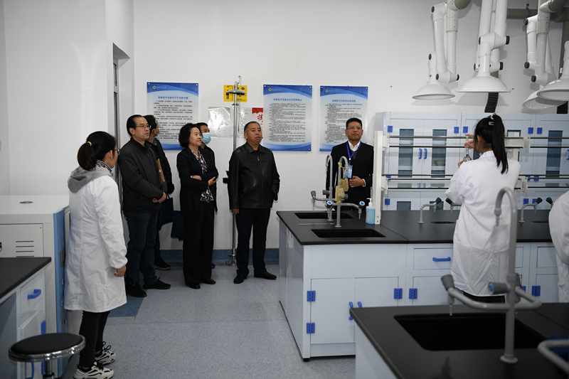 圖為督查組深入醫(yī)學(xué)類專業(yè)實訓(xùn)室、農(nóng)業(yè)食品實訓(xùn)室實地查看