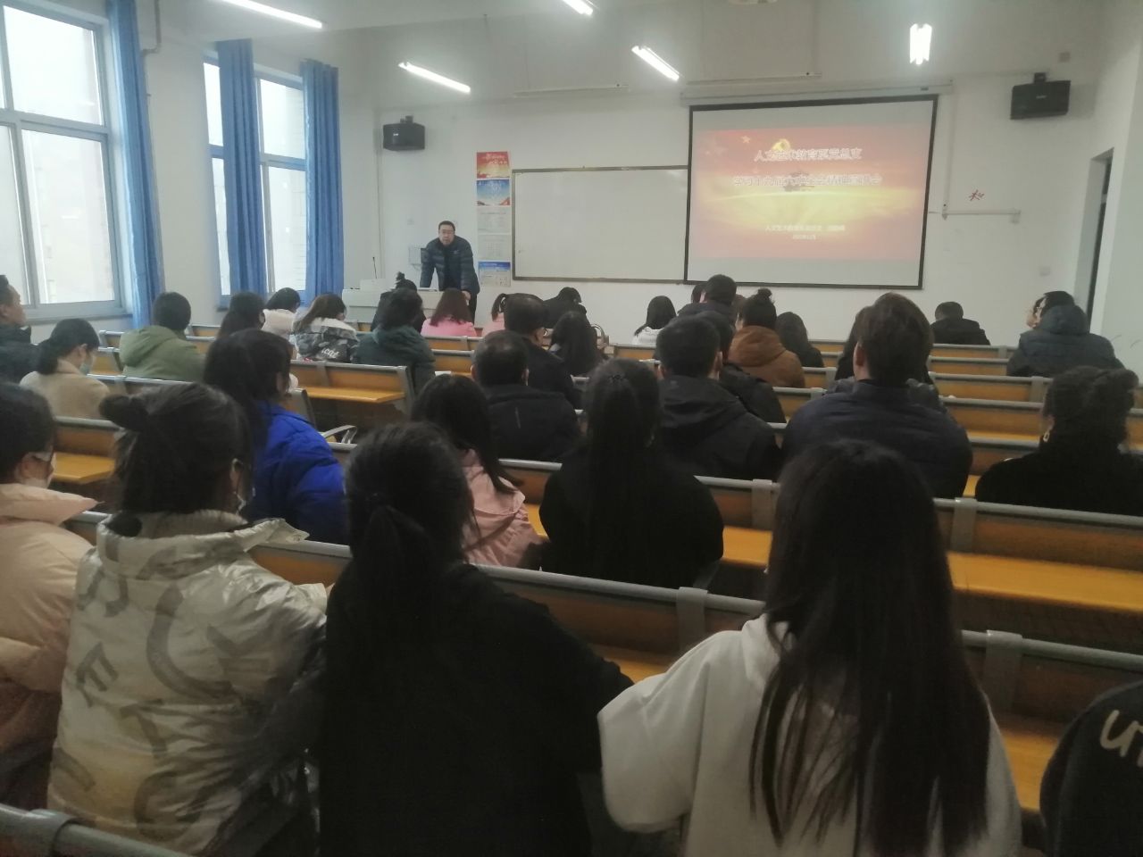 為深入學(xué)習(xí)宣傳貫徹中國共產(chǎn)黨十九屆六中全會精神,把全系師生的思想統(tǒng)一到全會精神上來,把智慧和力量凝聚到實現(xiàn)全會確定的各項目標(biāo)任務(wù)上來。2021年12月9日人文藝術(shù)教育系舉辦十九屆六中全會精神宣講報告會,由人文藝術(shù)教育系黨總支書記胡靜峰同志在勵勤樓309多媒體教室為全體黨員作了一場有思想、有溫度、有筋骨、接地氣的理論宣講報告,人文藝術(shù)教育系全體教師、輔導(dǎo)員、學(xué)生代表和外聘教師近百人參加了報告會。