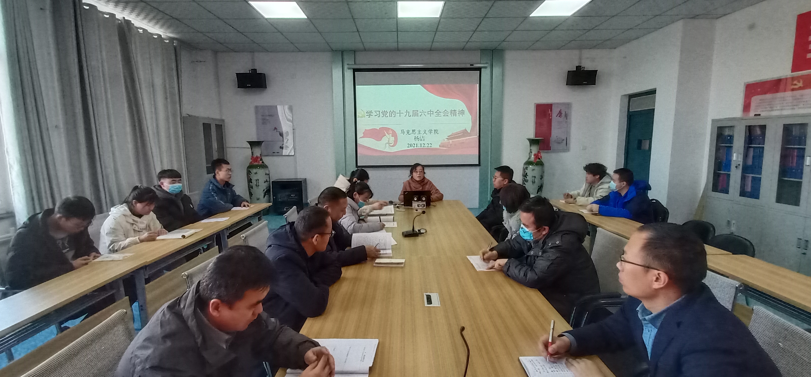 為深入學(xué)習(xí)貫徹落實(shí)黨的十九屆六中全會(huì)精神,12月22日下午,電子信息工程系邀請馬克思主義學(xué)院楊潔老師在明德樓409會(huì)議室進(jìn)行黨的十九屆六中全會(huì)精神專題宣講,電子信息工程系全體教師和學(xué)生入黨積極分子參加了宣講。
