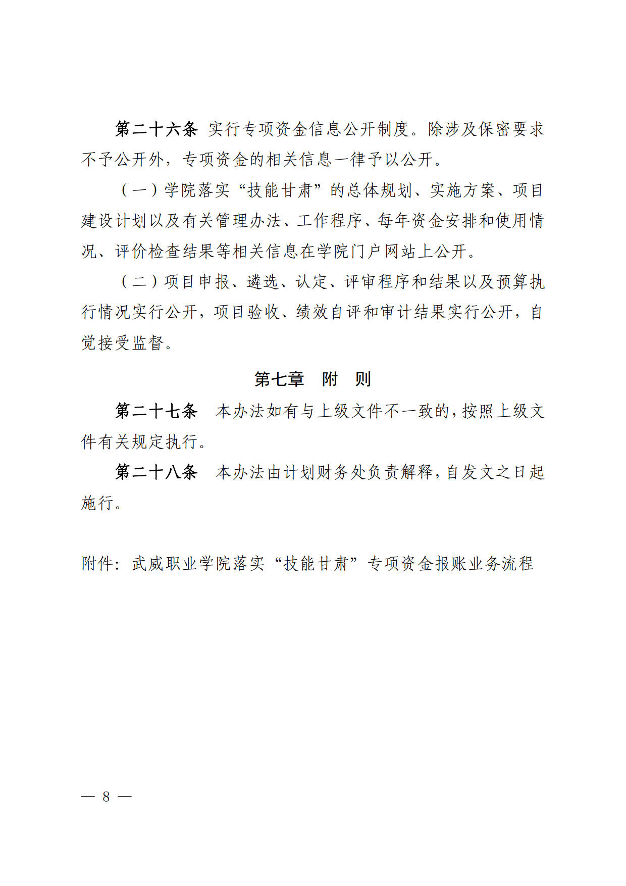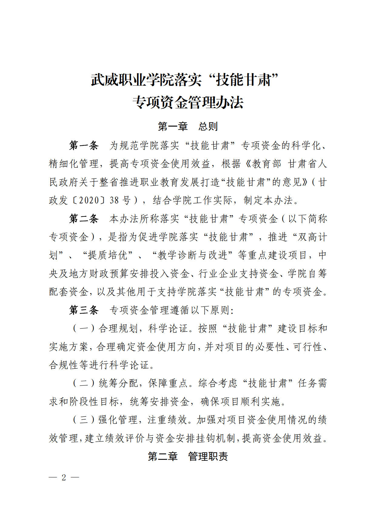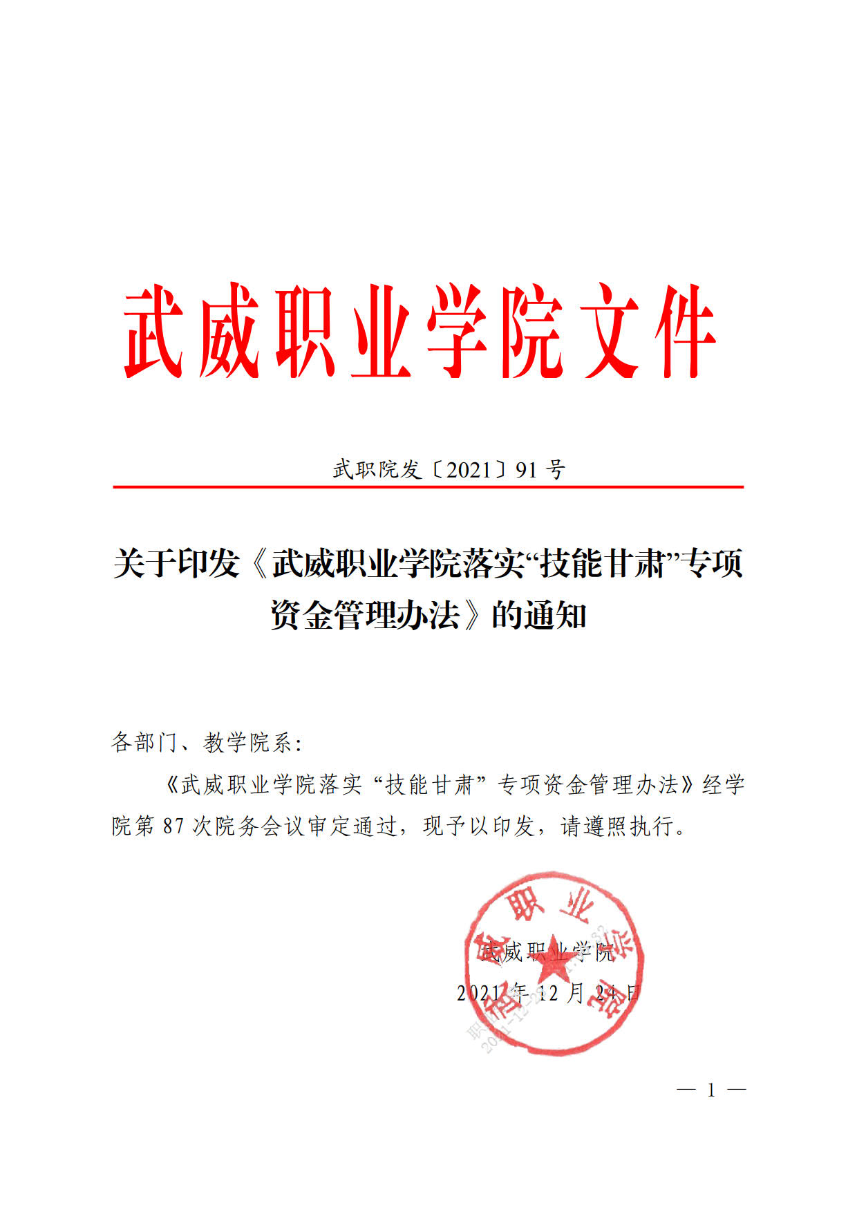 關(guān)于印發(fā)《武威職業(yè)學(xué)院落實“技能甘肅”專項資金管理辦法》的通知