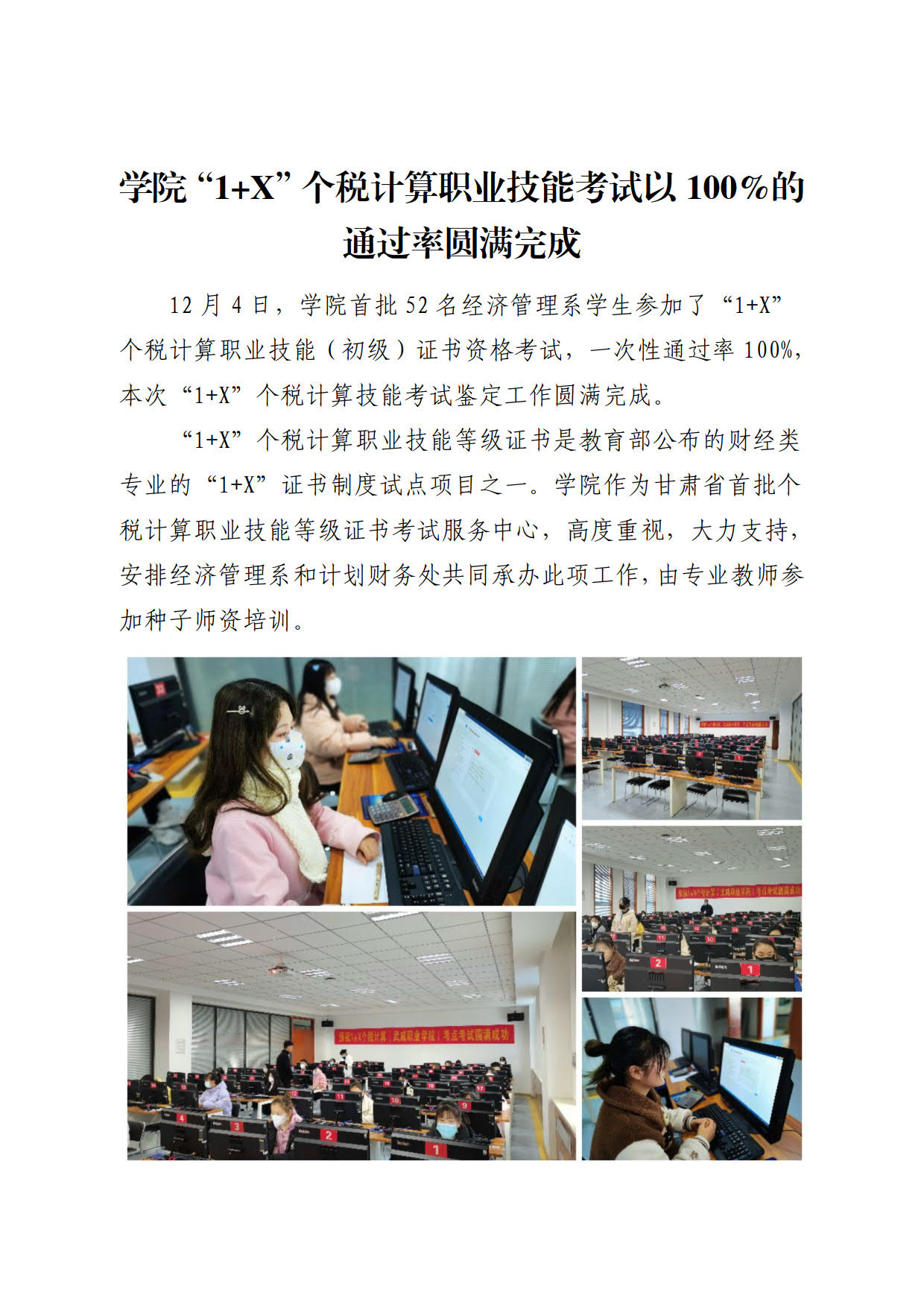 學(xué)院“1+X”個(gè)稅計(jì)算職業(yè)技能考試以100%的通過(guò)率圓滿(mǎn)完成