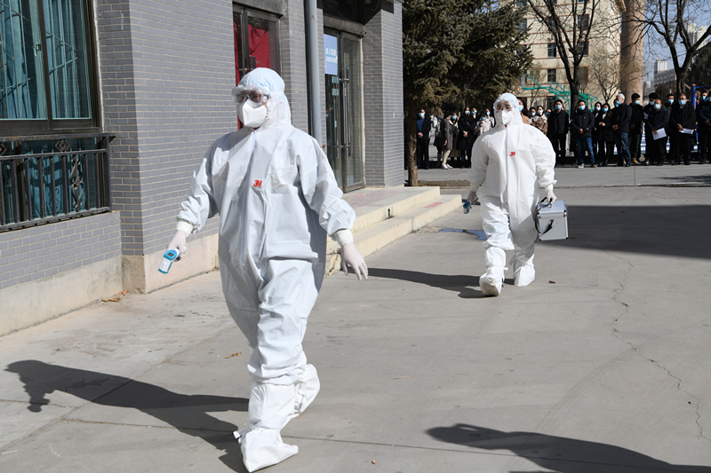 本次應(yīng)急演練重點(diǎn)圍繞體溫測(cè)試、清潔消毒、應(yīng)急處置等多項(xiàng)防控重點(diǎn)內(nèi)容開展實(shí)地演練。演練過程中,疫情處置應(yīng)急各小組嚴(yán)陣以待、聞令而動(dòng),按照既定預(yù)案迅速行動(dòng)、配合密切,準(zhǔn)確高效地完成了疫情防控應(yīng)急演練各項(xiàng)任務(wù),達(dá)到了演練的預(yù)期目的。學(xué)校疫情防控領(lǐng)導(dǎo)小組全體成員,市、區(qū)疾控中心專家,武威市腫瘤醫(yī)院(對(duì)接支持醫(yī)院),全體輔導(dǎo)員、班主任,醫(yī)務(wù)室全體人員,其他科室相關(guān)人員參加了演練。學(xué)校副校長(zhǎng)王永緒、王守云主持演練。