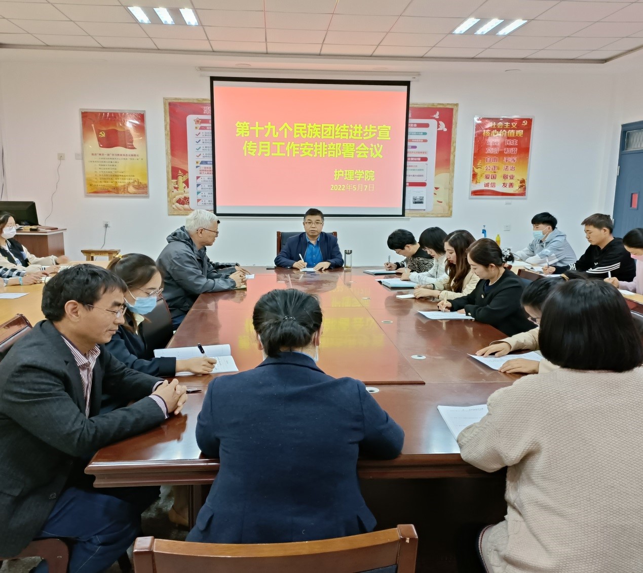 護(hù)理學(xué)院高度重視民族團(tuán)結(jié)進(jìn)步宣傳工作,于5月7日召開(kāi)專題會(huì)議安排部署此次宣傳月活動(dòng),確保此次活動(dòng)的順利開(kāi)展。