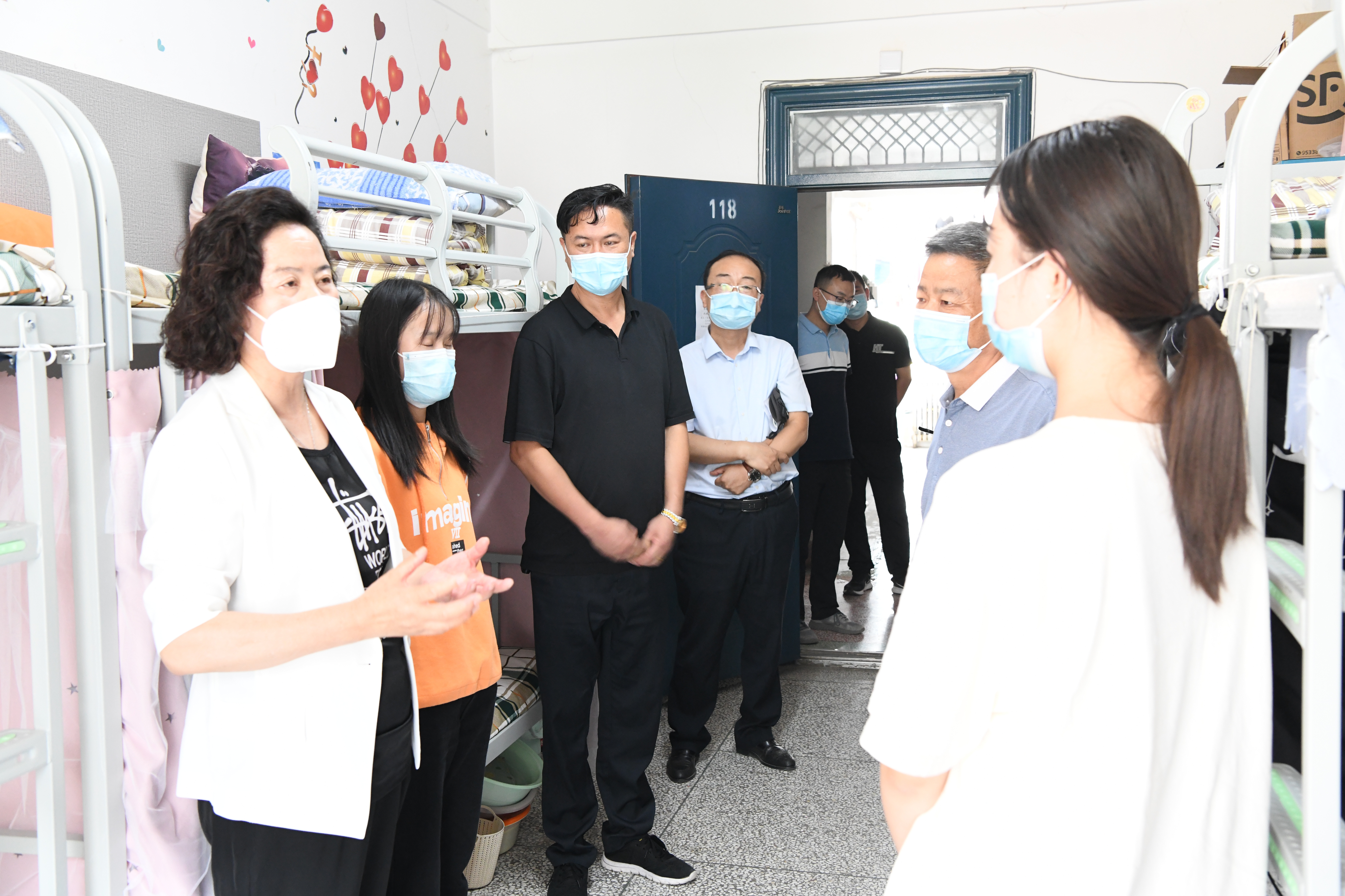 柳生墜先后來到東大門門衛(wèi)值班點、核酸檢測現場和學生宿舍,實地察看和了解學校門衛(wèi)管理、防控措施落實、核酸檢測、留校學生管理、餐飲保障、防疫物資儲備等情況。