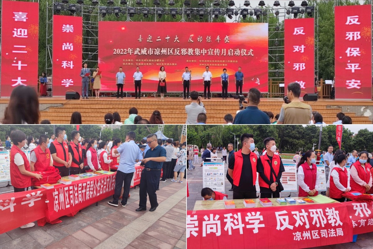 7月11日,“治理高效·平安和諧”法治教育實(shí)踐團(tuán)前往涼州區(qū)司法局進(jìn)行法治宣傳工作對(duì)接,雙方在12日早晨共赴涼州區(qū)植物園開展反邪教集中宣傳月啟動(dòng)儀式。