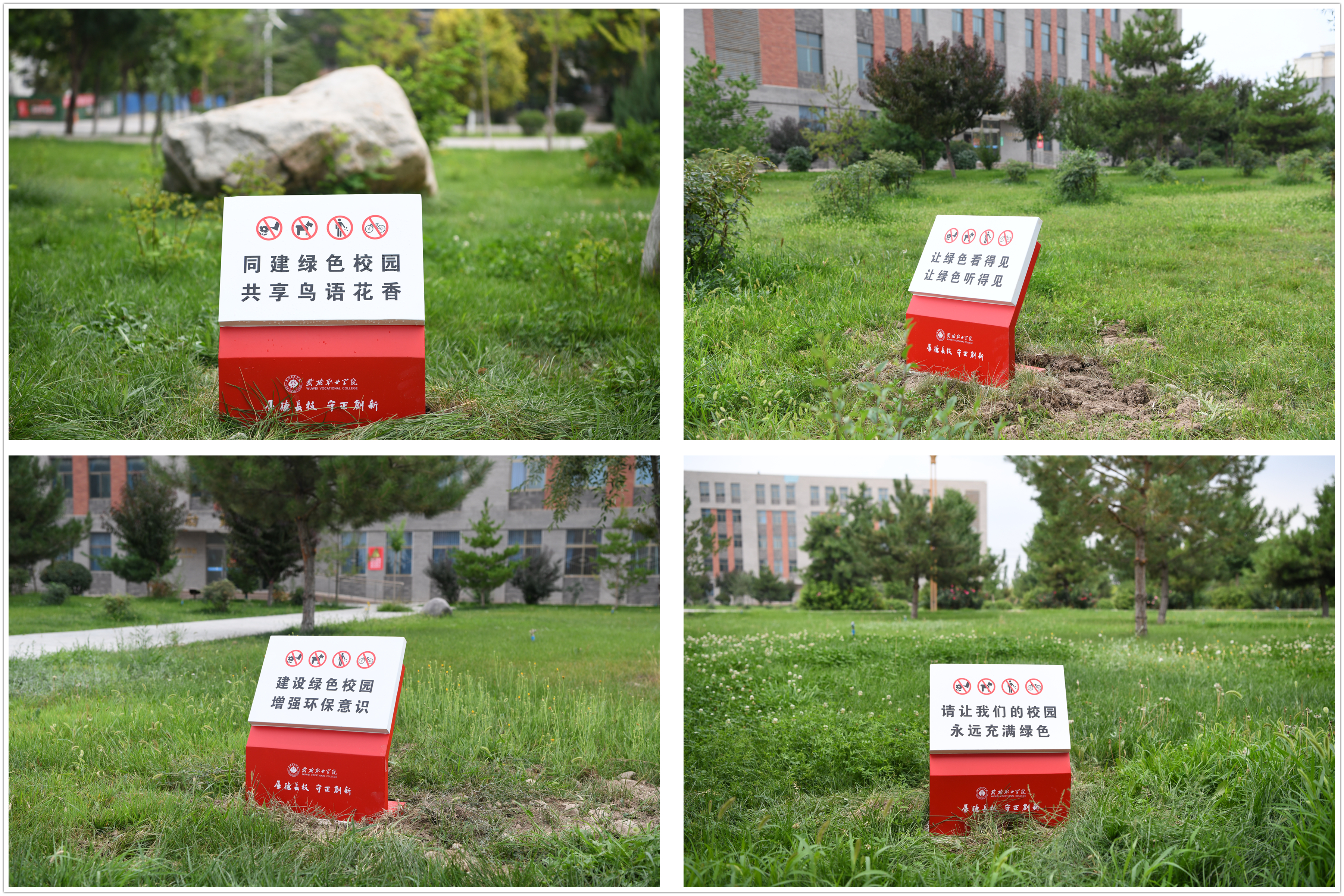 “繞行三五步,留得芳草綠”“要想校園凈又美,健康文明記心里”“手上留情花自香,腳下留情草如茵”。近日,在校園主干道周邊、草坪附近,這樣的文明言行提示語(yǔ)隨處可見。這是學(xué)校為不斷優(yōu)化校園環(huán)境,提升師生日常文明素養(yǎng),推動(dòng)文明校園建設(shè)的重要舉措,安裝完成后得到了廣大師生的高度贊賞。