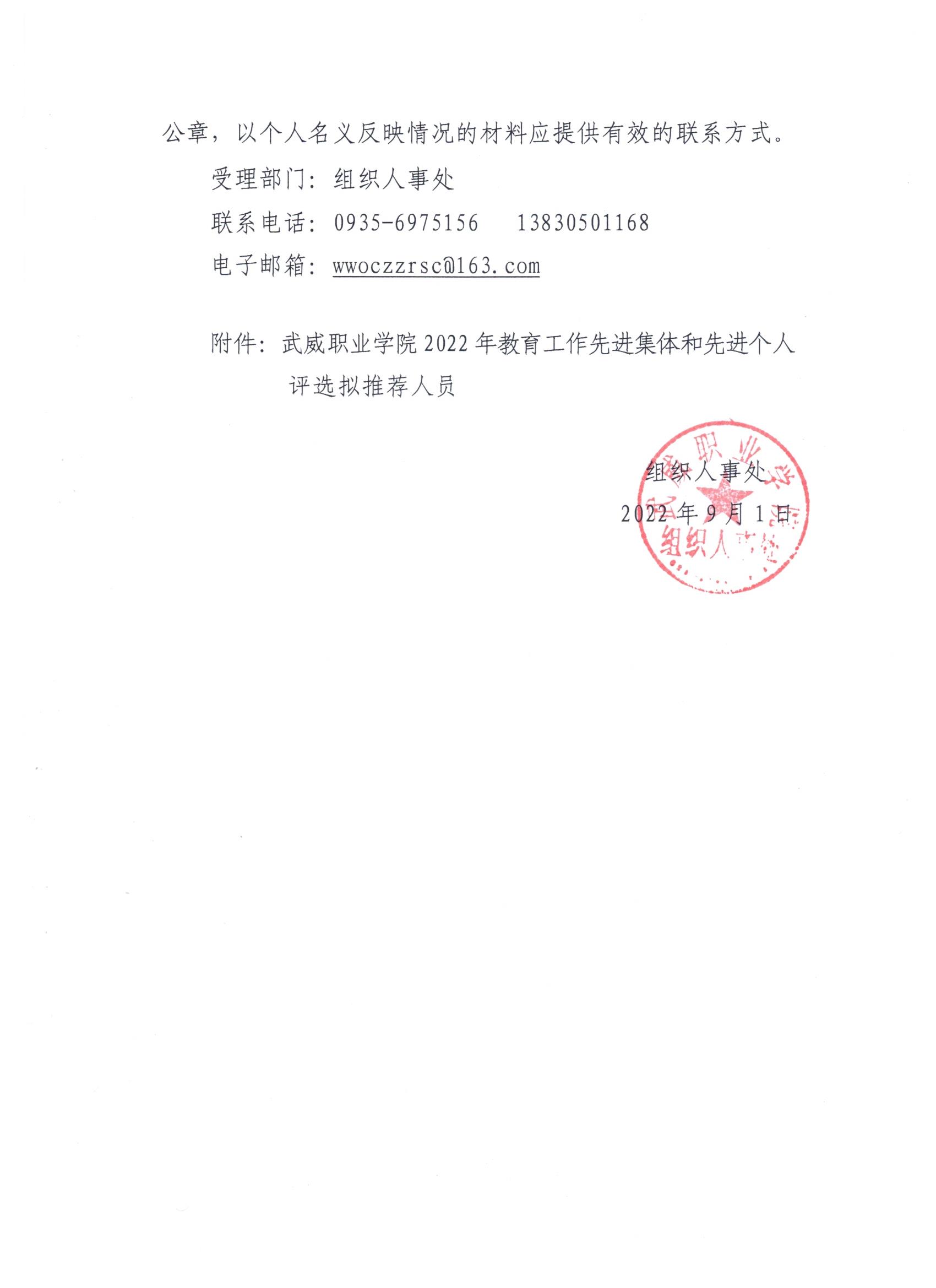 關(guān)于對(duì)學(xué)校2022年教育工作先進(jìn)集體和先進(jìn)個(gè)人評(píng)選對(duì)象結(jié)果的公示
