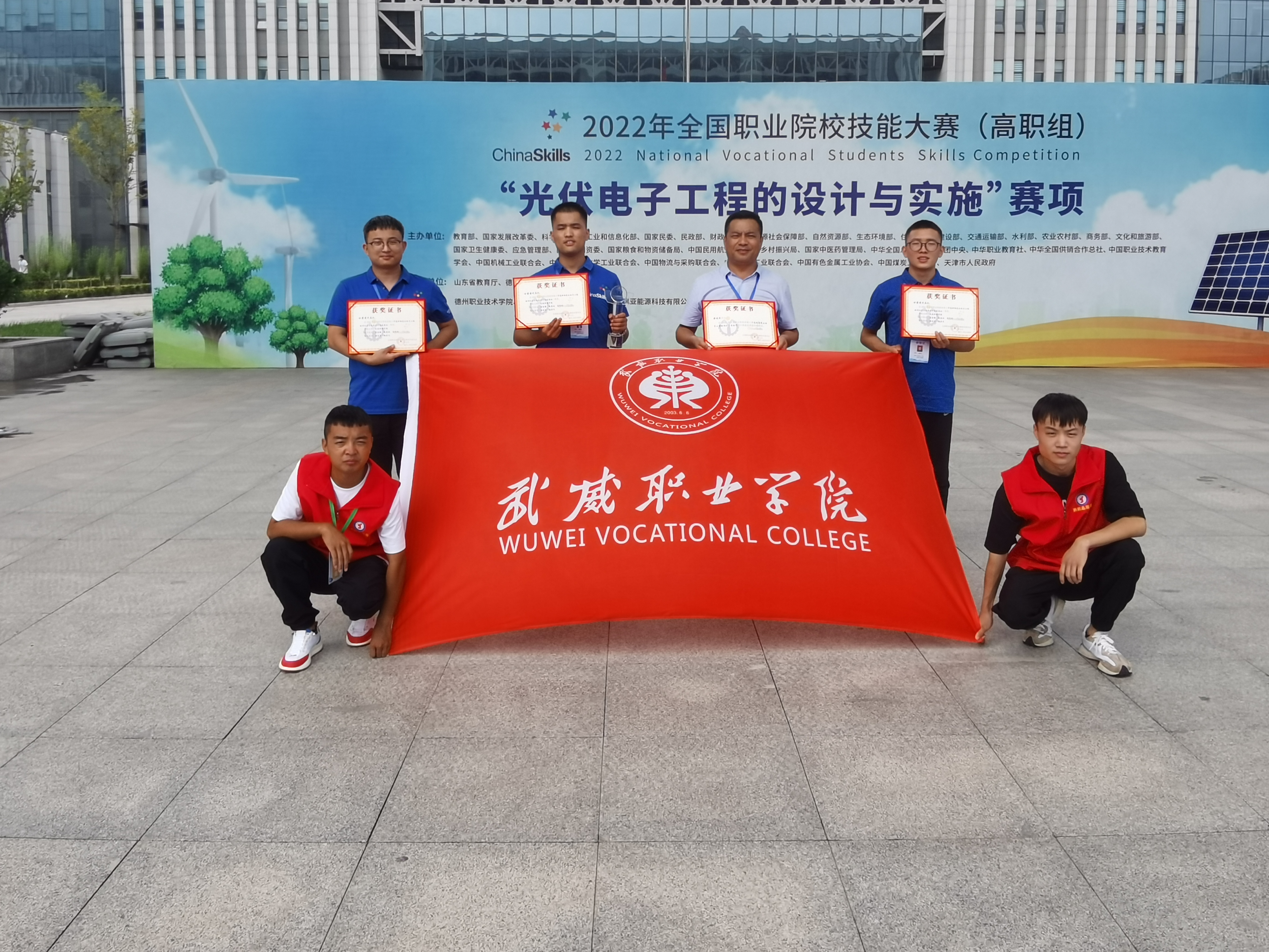 8月22日至23日,由教育部、工業(yè)和信息化部、財(cái)政部、人力資源和社會(huì)保障部、住房和城鄉(xiāng)建設(shè)部、交通運(yùn)輸部、農(nóng)業(yè)部等部委主辦的2022年全國(guó)職業(yè)院校技能大賽高職組“光伏電子工程的設(shè)計(jì)與實(shí)施”賽項(xiàng)在山東德州職業(yè)技術(shù)學(xué)院舉辦,來自全國(guó)30個(gè)省(市)、自治區(qū)的55支代表隊(duì)參加了比賽。武威職業(yè)學(xué)院中科低碳新能源技術(shù)學(xué)院高東興、富金強(qiáng)、趙寶林三名同學(xué)代表甘肅省參加本次大賽,最終榮獲國(guó)賽一等獎(jiǎng),完全實(shí)現(xiàn)了賽前確定的“穩(wěn)二爭(zhēng)一”的目標(biāo)任務(wù)。這是學(xué)校參加全國(guó)職業(yè)院校技能大賽以來首次獲得國(guó)賽一等獎(jiǎng),實(shí)現(xiàn)了學(xué)校該賽項(xiàng)國(guó)獎(jiǎng)“零”的突破,開啟了學(xué)校專業(yè)建設(shè)高質(zhì)量發(fā)展新征程。本次優(yōu)異成績(jī)的取得充分展現(xiàn)了學(xué)?!皪徴n賽證”相融通的綜合育人效果,充分體現(xiàn)了學(xué)校深化“三教改革”推動(dòng)高質(zhì)量發(fā)展的成效,充分彰顯了學(xué)校實(shí)施“雙高計(jì)劃”“技能甘肅”“提質(zhì)培優(yōu)”等重大項(xiàng)目建設(shè)推進(jìn)高水平發(fā)展的成效,本次競(jìng)賽成績(jī)是對(duì)學(xué)校新能源類專業(yè)建設(shè)的肯定,也是武威乃至全省職業(yè)教育發(fā)展的試金石和榮光。
