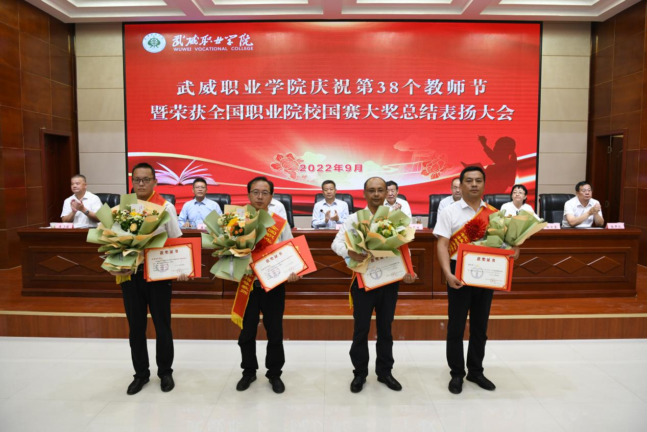 學校領導分別宣讀了《武威職業(yè)學院關于表揚2022年教育工作先進集體和先進個人的決定》《武威職業(yè)學院關于認定(聘任)2022年“教書育人楷?!薄敖虒W名師”“教學能手”“教學新秀”“我最喜愛的老師”和“專業(yè)(學科)帶頭人”的決定》。楊存忠、李海峰和學校領導分別為獲獎者代表頒發(fā)榮譽證書。