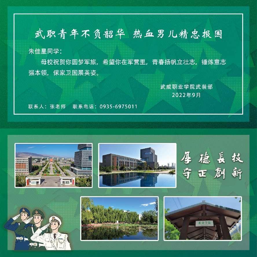 金鑫代表涼州區(qū)人武部和兵役機(jī)關(guān),感謝武威職業(yè)學(xué)院多年來一直對征兵工作的大力支持,感謝學(xué)校為部隊(duì)輸送優(yōu)秀青年,并要求入伍大學(xué)生,嚴(yán)格訓(xùn)練,做好從學(xué)生到戰(zhàn)士的迅速轉(zhuǎn)變,早日成為一名合格的人民子弟兵。