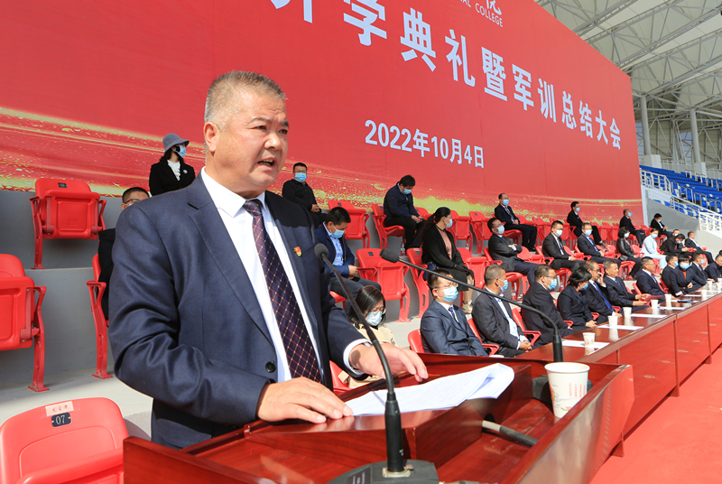 金秋的校園陽光明媚,嘹亮的歌聲唱響青春。10月4日上午9時(shí),在莊嚴(yán)隆重的升國(guó)旗儀式結(jié)束后,2022級(jí)新生開學(xué)典禮暨軍訓(xùn)總結(jié)大會(huì)在體育場(chǎng)拉開了帷幕。學(xué)校黨委書記、校長(zhǎng)趙明出席大會(huì)并講話,涼州區(qū)人武部上校政委丁俊強(qiáng)受邀出席。校領(lǐng)導(dǎo)翟存祥、王永緒、田迎春、何毅、陳曉煜、張開禮出席大會(huì)。大會(huì)由學(xué)校黨委委員、副校長(zhǎng)王守云主持。