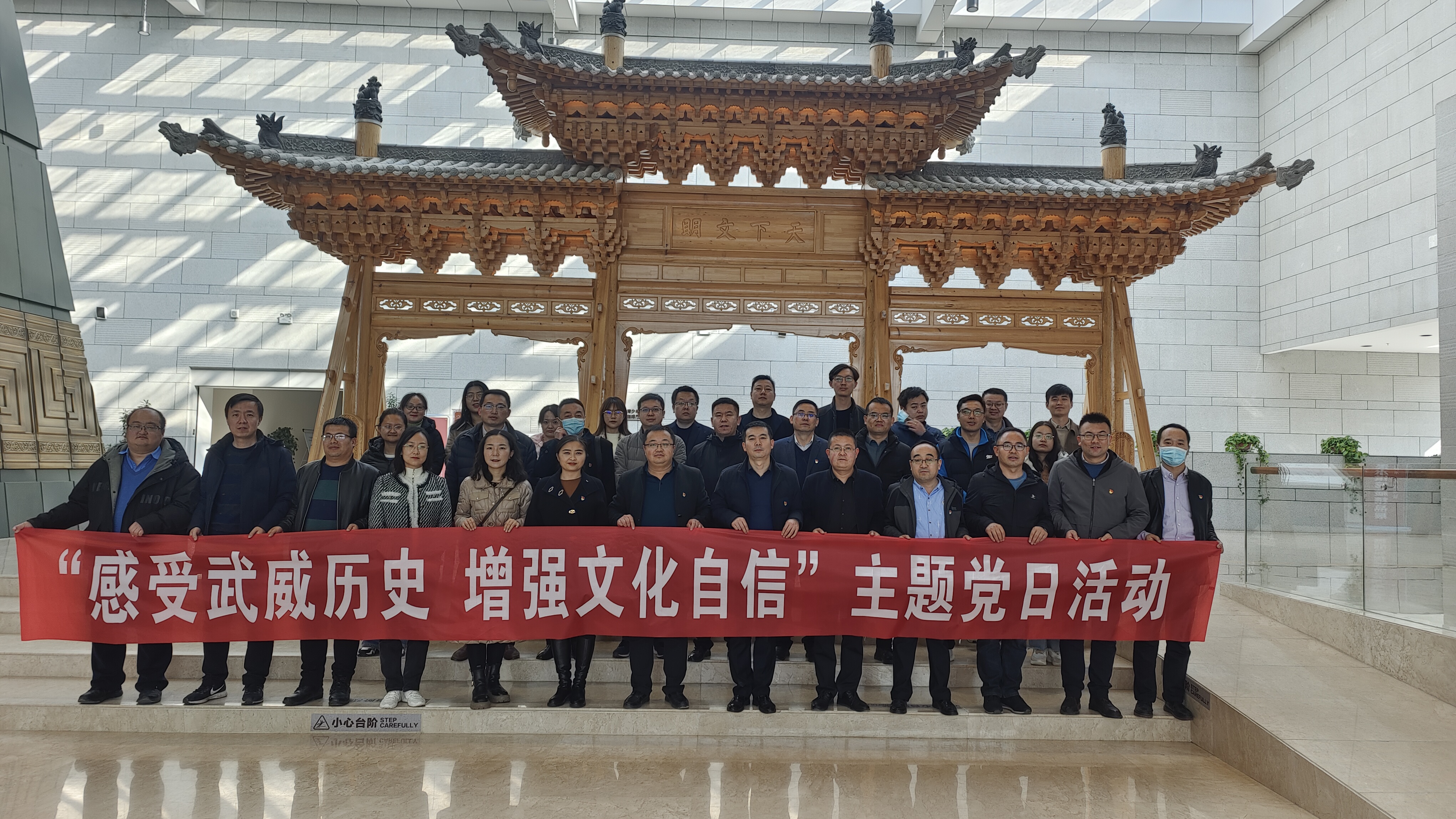 2月21日,行政第一黨支部、行政第二黨支部、教學(xué)管理第一黨支部在武威市博物館、文廟聯(lián)合開展“感受武威歷史增強(qiáng)文化自信”主題黨日活動(dòng)。