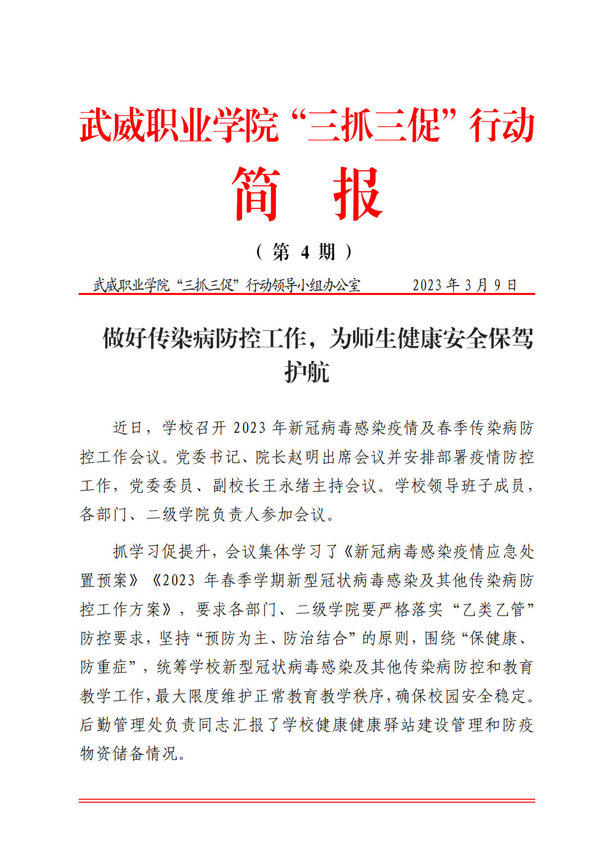簡報(bào)第4期:做好傳染病防控工作,為師生健康安…