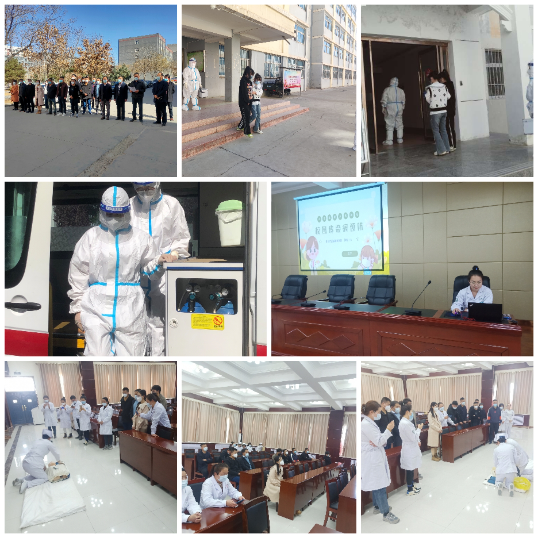 學(xué)校開展新冠病毒感染疫情實(shí)操性轉(zhuǎn)診救治應(yīng)急轉(zhuǎn)運(yùn)演練暨應(yīng)急救護(hù)、防疫知識培訓(xùn)