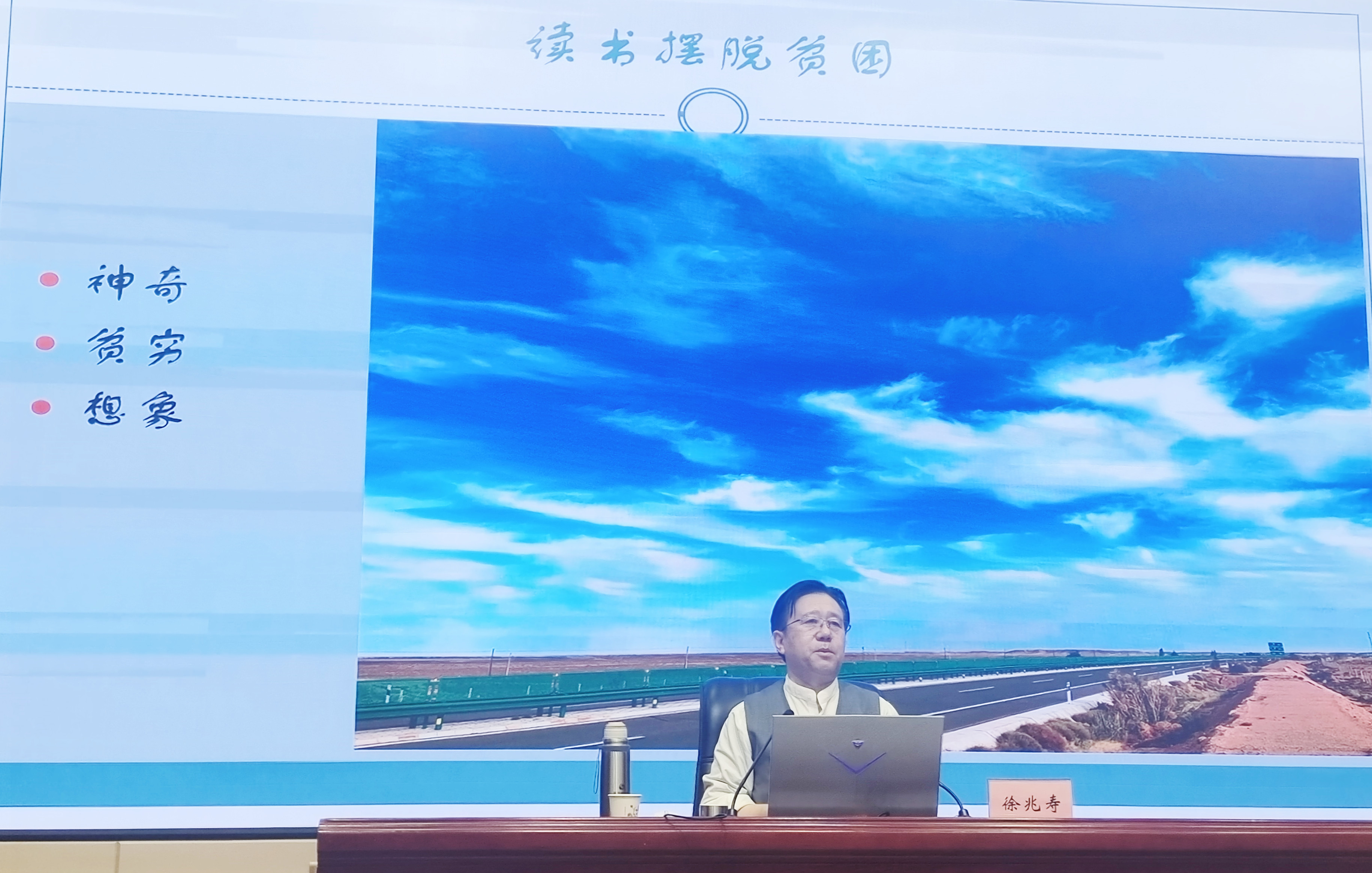 徐兆壽在講座中回顧了自己從事文學(xué)創(chuàng)造的初心、經(jīng)歷和創(chuàng)作風(fēng)格的變化,向師生分享了自己的心路歷程和文學(xué)創(chuàng)作道路。勉勵(lì)同學(xué)們要懷揣夢(mèng)想,傳承中國(guó)優(yōu)秀傳統(tǒng)文化,對(duì)世界充滿好奇,用知識(shí)改變命運(yùn),在實(shí)現(xiàn)中華民族偉大復(fù)興中貢獻(xiàn)自己。