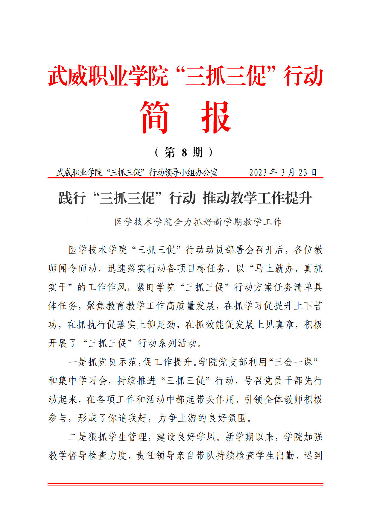 簡報第8期:踐行“三抓三促”行動 推動教學工作提升