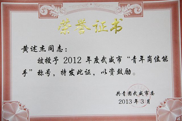 3月8日,在共青團武威市二屆七次全委會上,團市委表彰了2012年度先進集體和個人,我系團總支被評為“武威市五四紅旗團支部”,系團總支書記黃述杰老師被評為“武威市青年崗位能手”,11級光伏發(fā)電技術及應用大專班張鳳鳳同學被評為“武威市優(yōu)秀共青團員”。