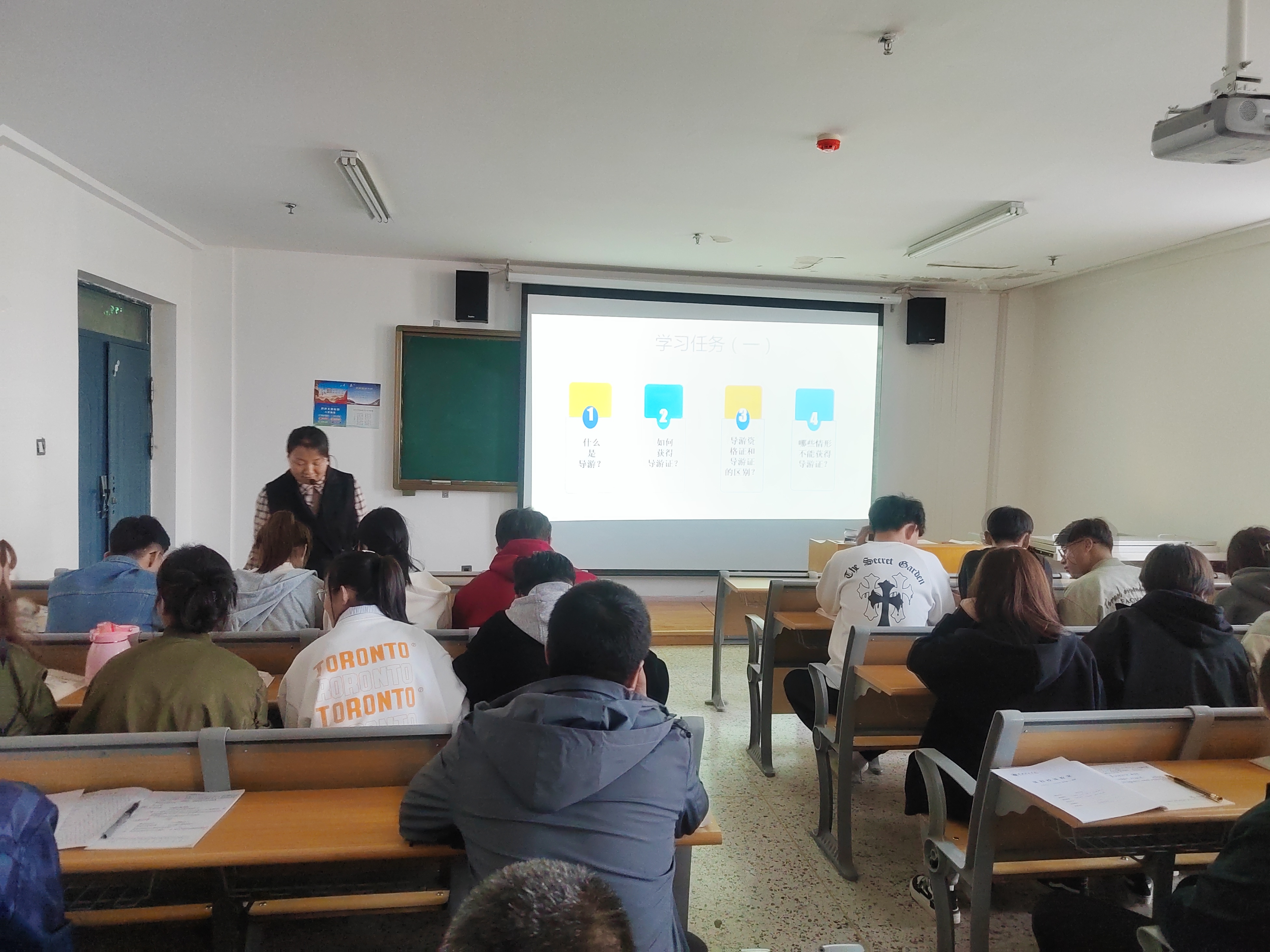 旅游教研室教師孔玉玲以《導(dǎo)游管理法律制度》為主題,帶領(lǐng)2022級旅游管理大專班學(xué)生為大家奉上了一堂精彩的研討課。整個(gè)過程在課程思政理念的指導(dǎo)下,以“某旅行社委派無證導(dǎo)游帶團(tuán)造成嚴(yán)重后果”引入課題,激發(fā)學(xué)生興趣,緊接著圍繞課程導(dǎo)入案例,采用講授法、討論法、任務(wù)驅(qū)動法等多元化的教學(xué)方式,將課程教學(xué)內(nèi)容與思政元素?zé)o縫銜接,實(shí)現(xiàn)了顯性培育與隱性熏陶的完美融合,取得了良好的教學(xué)效果。