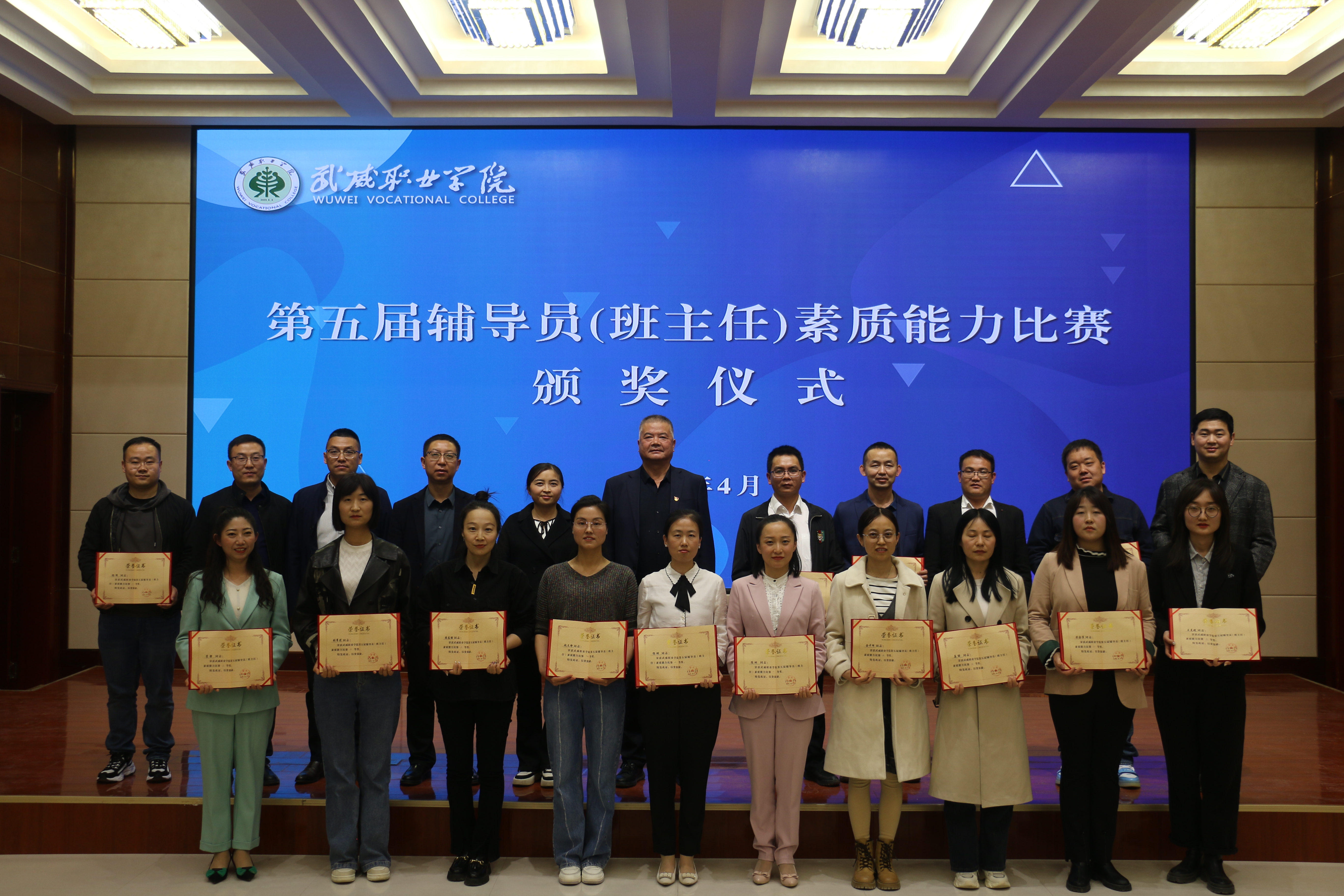 4月18日至20日,武威職業(yè)學(xué)院第五屆輔導(dǎo)員(班主任)素質(zhì)能力比賽在菁英廳成功舉辦。決賽現(xiàn)場(chǎng),學(xué)院黨委委員、副校長(zhǎng)王守云出席活動(dòng)并為獲獎(jiǎng)選手頒獎(jiǎng)。