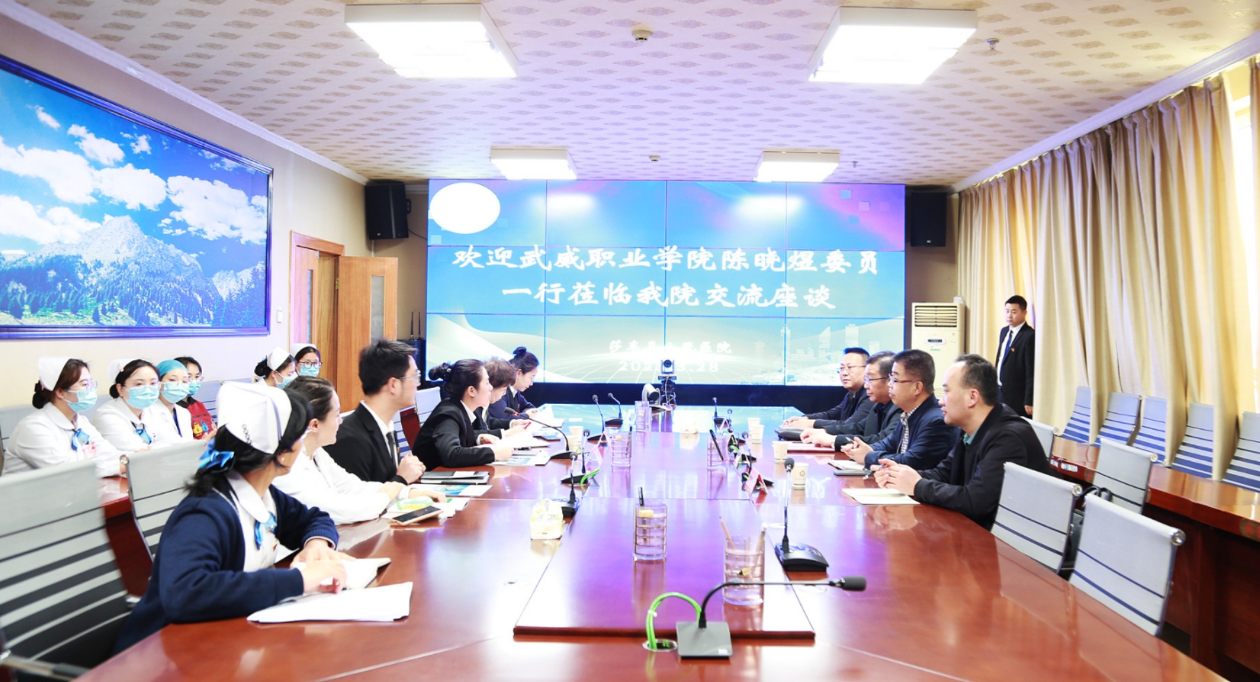 在和田地區(qū)人民醫(yī)院訪企拓崗座談會(huì)上,陳曉煜介紹了學(xué)校發(fā)展情況和本次走訪醫(yī)院的工作任務(wù),希望進(jìn)一步加強(qiáng)校院深度合作,共同優(yōu)化人才培養(yǎng)方案和課程設(shè)置,提升學(xué)校人才培養(yǎng)質(zhì)量,為邊疆衛(wèi)生事業(yè)發(fā)展提供人才支持。張建輝從學(xué)校二級(jí)學(xué)院設(shè)置、師資隊(duì)伍、教育教學(xué)、開(kāi)設(shè)專業(yè)、人才培養(yǎng)、畢業(yè)生實(shí)習(xí)就業(yè)等方面做了介紹。和田地區(qū)人民醫(yī)院院長(zhǎng)艾尼玩·阿布都熱依木介紹了醫(yī)院的基本情況及用人需求,對(duì)我校畢業(yè)生給予了高度評(píng)價(jià)。醫(yī)院現(xiàn)有我校醫(yī)藥衛(wèi)生類專業(yè)畢業(yè)生86人,其中13名護(hù)理專業(yè)畢業(yè)生擔(dān)任相關(guān)科室護(hù)士長(zhǎng),成為醫(yī)院護(hù)理崗位中堅(jiān)力量,他希望學(xué)校培養(yǎng)更多優(yōu)秀畢業(yè)生到醫(yī)院實(shí)習(xí)就業(yè)。