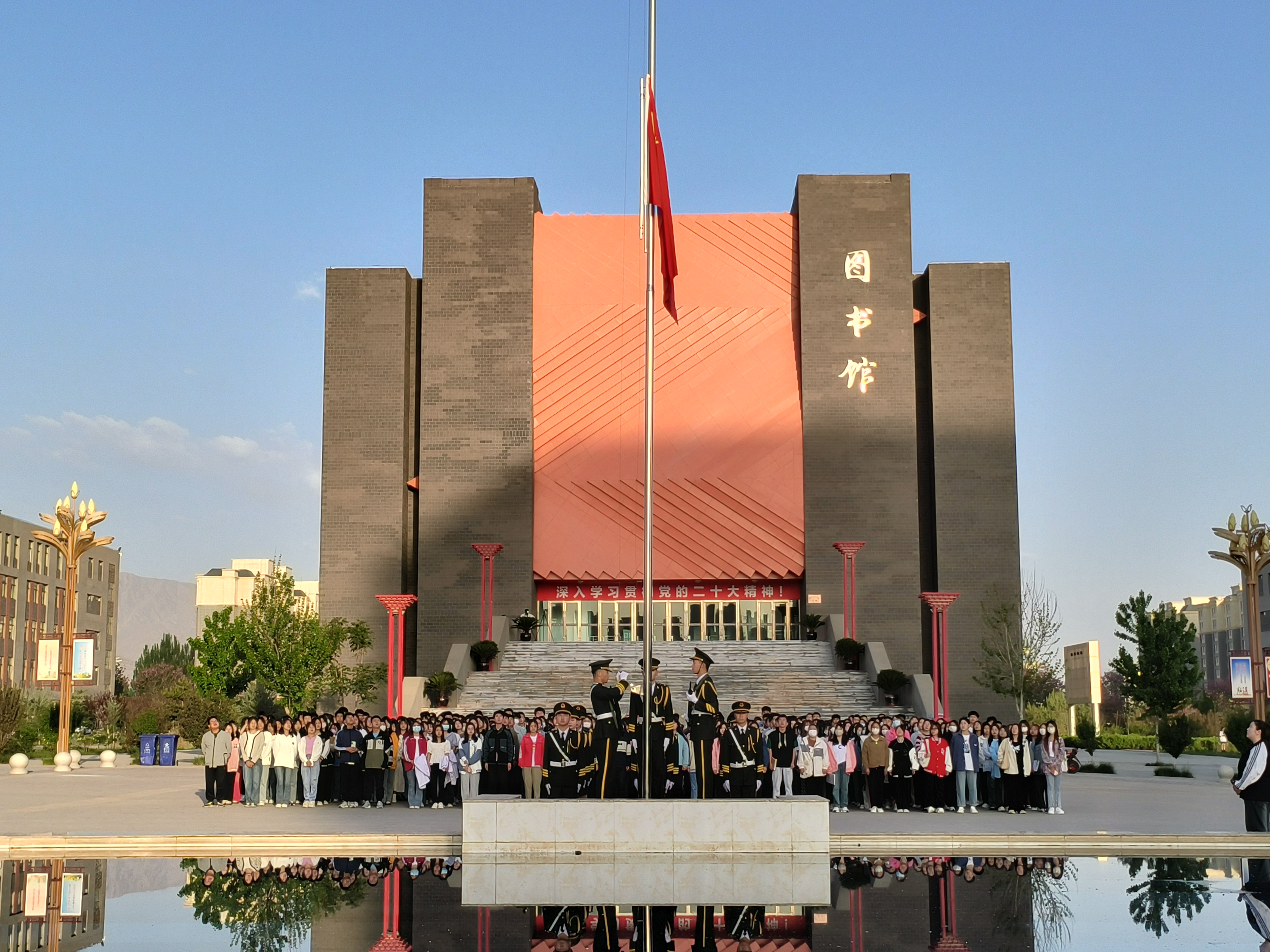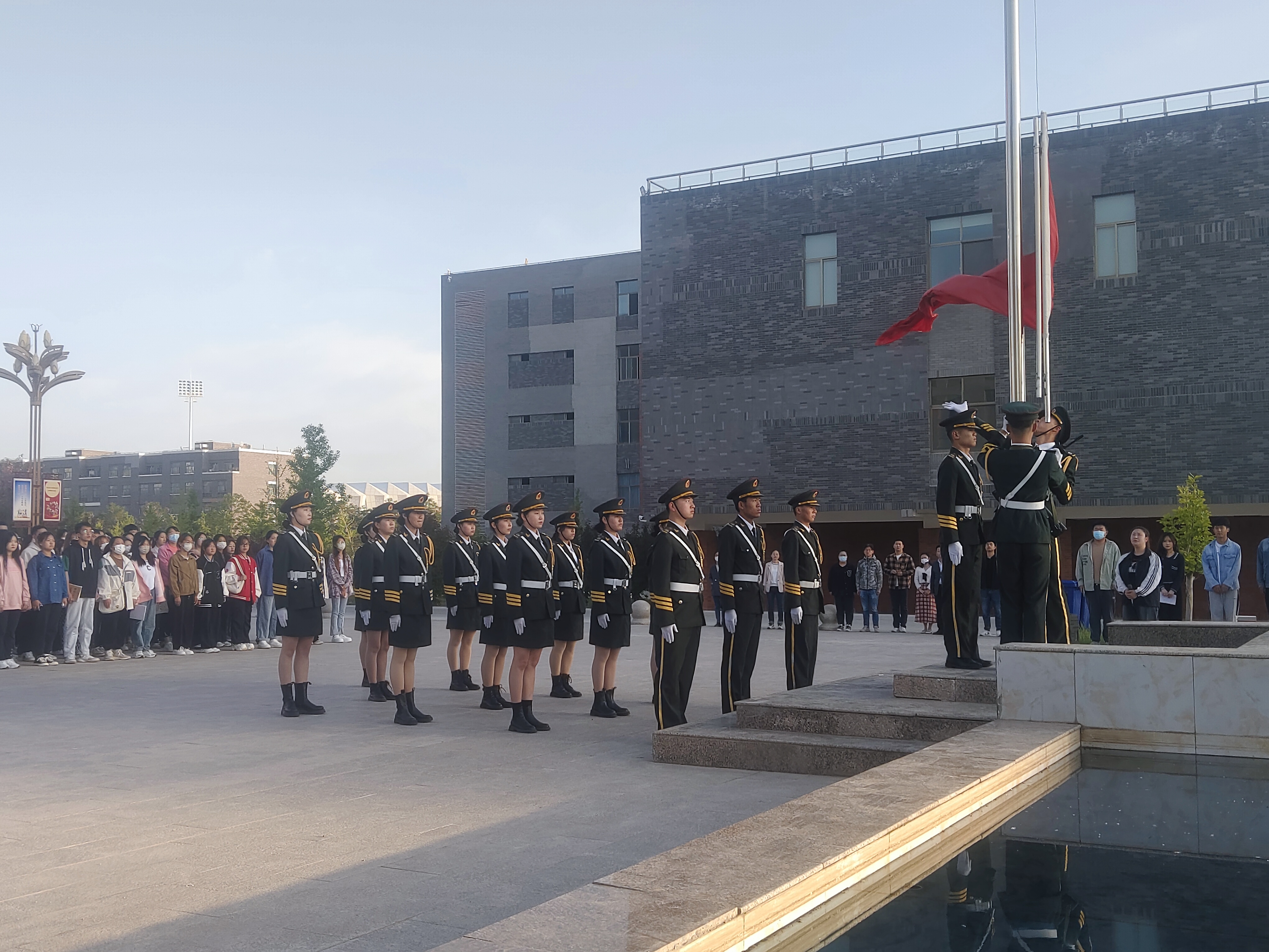 ? ? ? ?五月如歌,萬物齊詠,沐浴著夏日清晨的暖陽,2023年5月15日,藥學(xué)院舉行第十二周的升旗儀式。本次升旗儀式在圖書館前國(guó)旗下進(jìn)行,由學(xué)生會(huì)主席尚寶萍同學(xué)主持。
