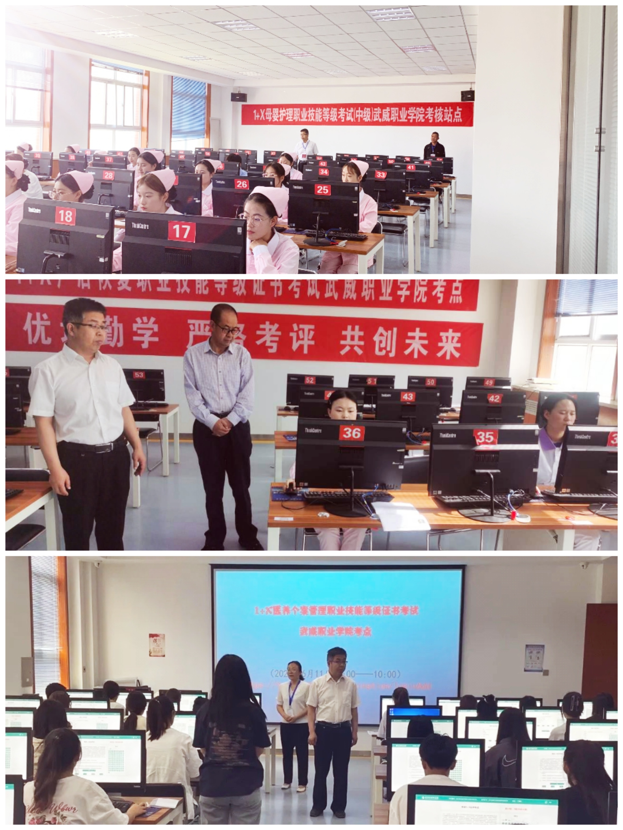 1+X職業(yè)技能等級證書(中級)2023年第一批考試于6月10-11日在我校成功舉行,我校護理學院共有110名護理、助產和老年保健與管理專業(yè)的學生參加。