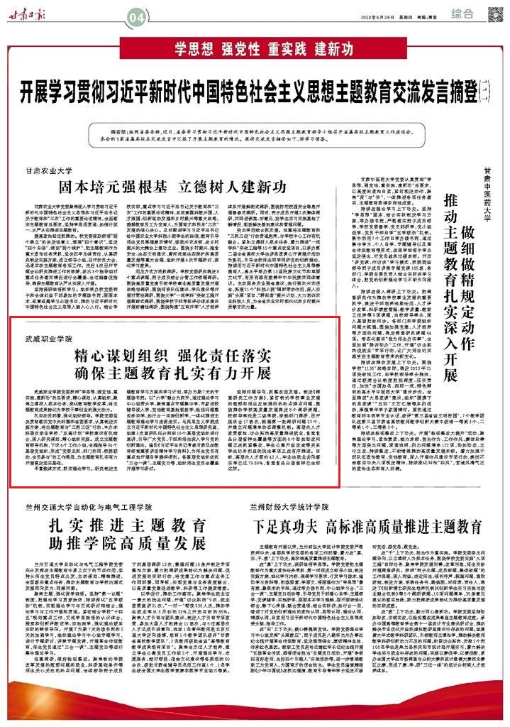 甘肅日?qǐng)?bào)刊登學(xué)院在省屬高校主題教育工作座談會(huì)上的發(fā)言