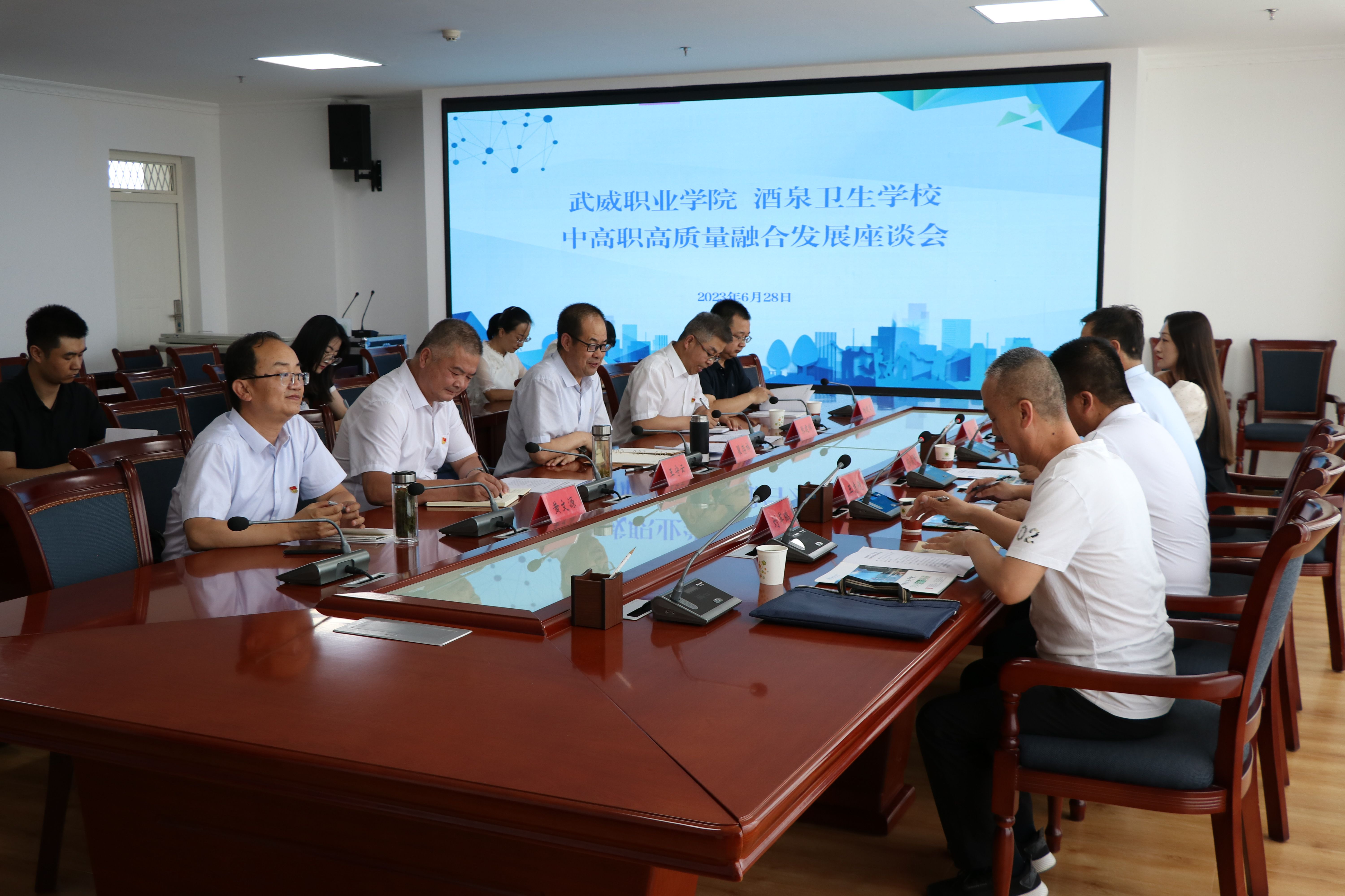6月28日下午,酒泉衛(wèi)生學(xué)校黨委委員、副校長(zhǎng)孫俊峰帶領(lǐng)教務(wù)科、招生辦公室負(fù)責(zé)人來(lái)我??疾旖涣?。雙方就進(jìn)一步加強(qiáng)醫(yī)藥衛(wèi)生類專業(yè)學(xué)生貫通培養(yǎng)工作在能源樓811會(huì)議室開(kāi)展交流座談。學(xué)校黨委副書(shū)記翟存祥,黨委委員、副校長(zhǎng)王守云,護(hù)理學(xué)院負(fù)責(zé)人張建輝,藥學(xué)院負(fù)責(zé)人楊建美,醫(yī)學(xué)技術(shù)學(xué)院負(fù)責(zé)人黃文源及教師代表參加會(huì)議。會(huì)議由翟存祥同志主持。