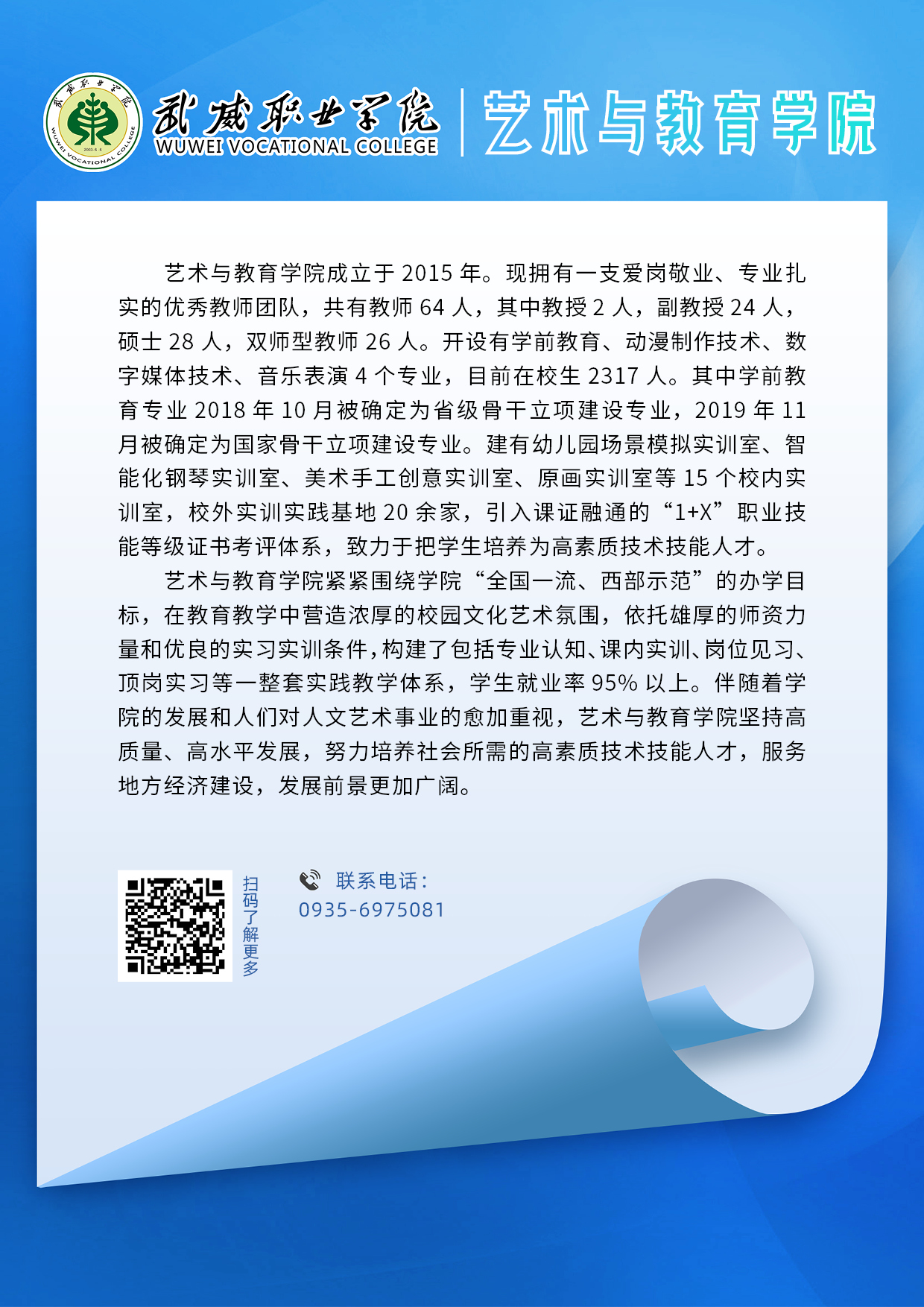 武威職業(yè)學(xué)院二級(jí)學(xué)院專業(yè)簡介丨藝術(shù)與教育學(xué)院