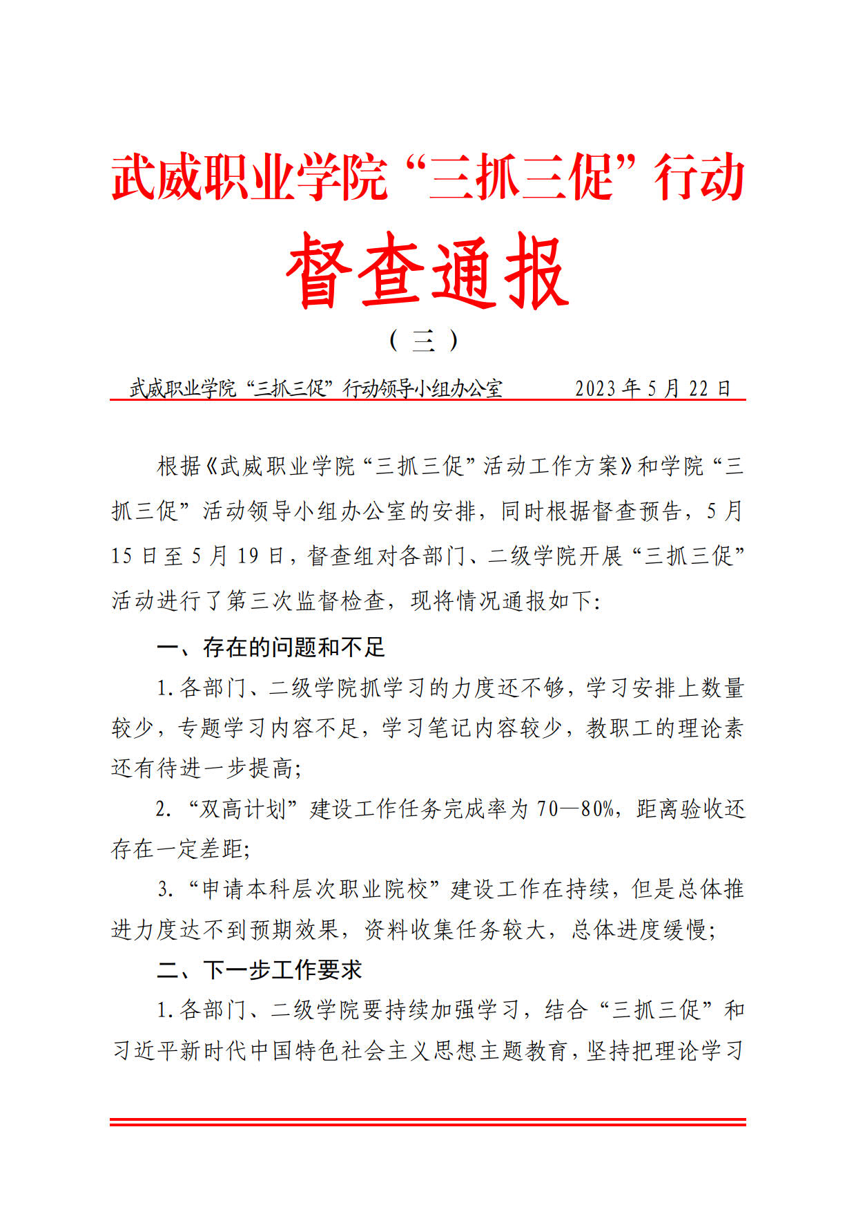 武威職業(yè)學院“三抓三促”行動