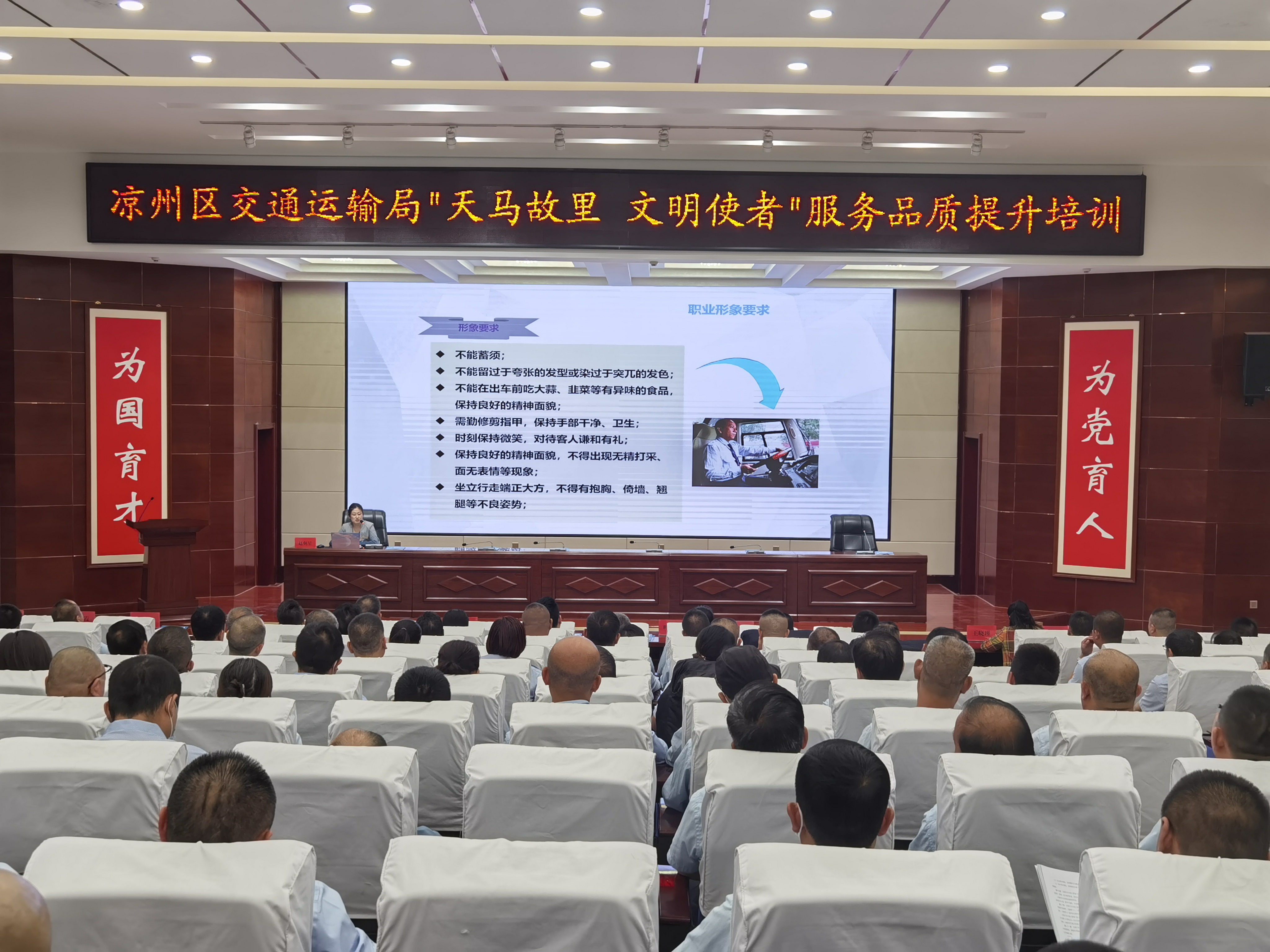 本次培訓(xùn)班由武威市交通運輸局、涼州區(qū)交通運輸局主辦,武威職業(yè)學(xué)院協(xié)辦,培訓(xùn)共11期,培訓(xùn)學(xué)員約2200人。培訓(xùn)班邀請武威職業(yè)學(xué)院、市交通運輸綜合行政執(zhí)法隊、武威市公安局涼州分局交警大隊的相關(guān)專家授課,重點普及交通安全法律法規(guī)和文明禮儀、誠信服務(wù)、城市旅游等方面的知識,不斷提高客運行業(yè)從業(yè)人員職業(yè)道德、服務(wù)意識、安全意識和旅游常識,提高文明服務(wù)水平,當(dāng)好城市文明使者。