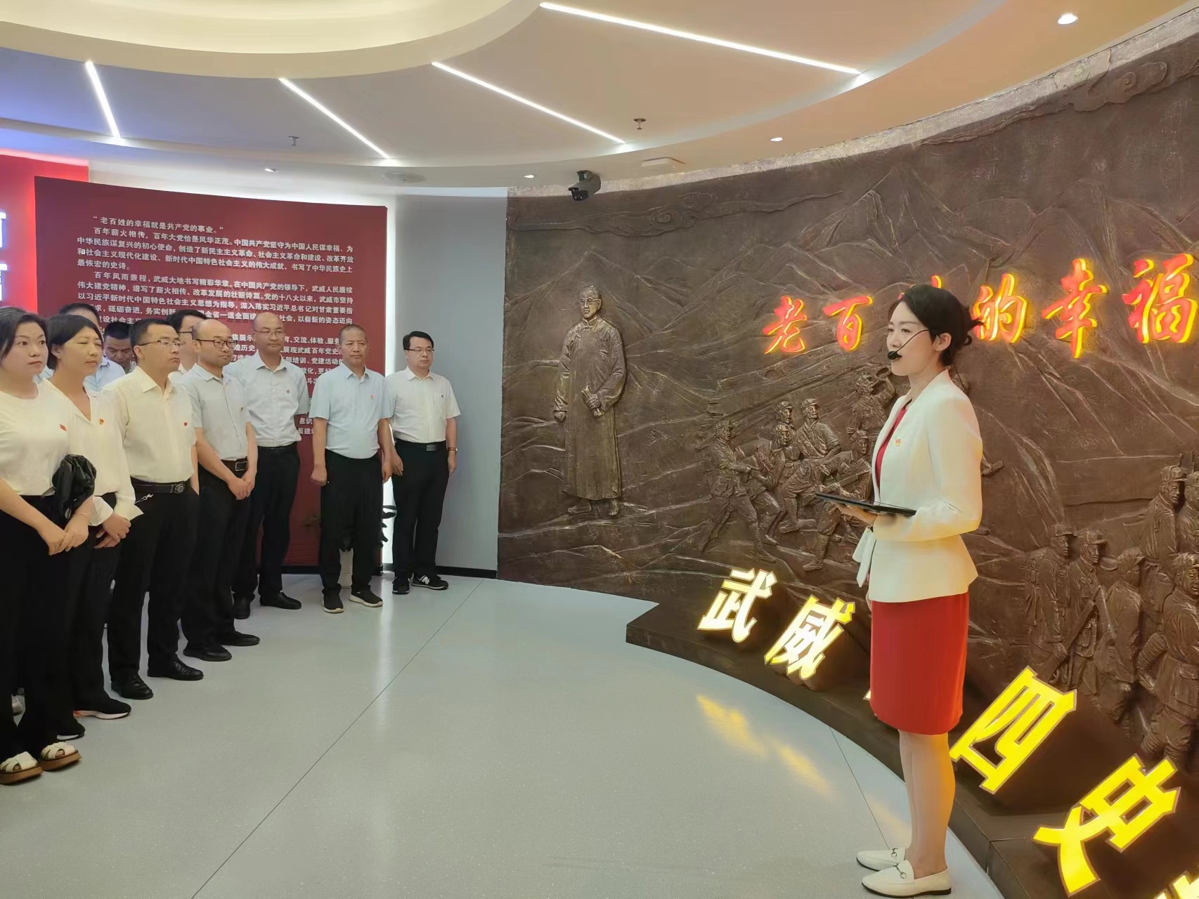 ? ? ? ? ?全體黨員懷著崇敬的心情,在講解員的引導(dǎo)下,大家有序參觀了黨性教育基地序廳、主廳、智慧黨建廳、紅色文創(chuàng)廳、尾廳和初心講堂。一件件實(shí)物、一幅幅圖片、一段段故事,把大家?guī)Щ氐侥嵌尾憠验煹膷槑V歲月,共同追憶了武威發(fā)展的光輝歷程和紅色歷史,對(duì)武威發(fā)展的輝煌歷程有了更加深入的了解和認(rèn)識(shí),對(duì)共產(chǎn)黨人的初心和使命有了更深刻的理解和感悟。在初心講堂,黨員們共同觀看紅色專題片《先鋒之光》,重溫中國(guó)共產(chǎn)黨人為了建設(shè)新中國(guó)拋頭顱、灑熱血的崢嶸歲月。