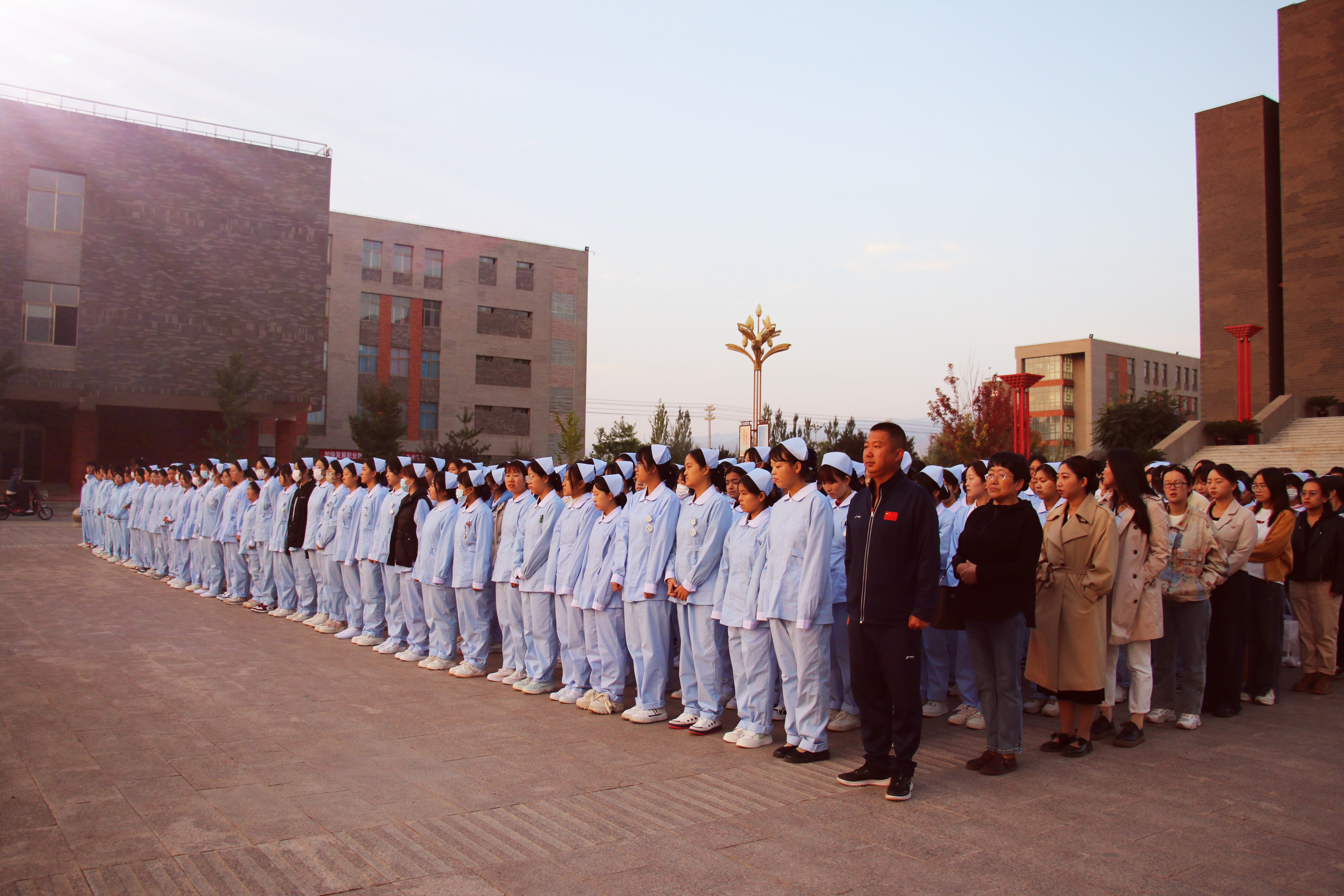 10月9日清晨,護理學(xué)院在圖書館前廣場舉行升國旗儀式,學(xué)院黨總支書記張建輝、團委書記楊杰、全體班主任及2022、2023級全體學(xué)生參加此次升旗儀式,儀式由楊杰主持。