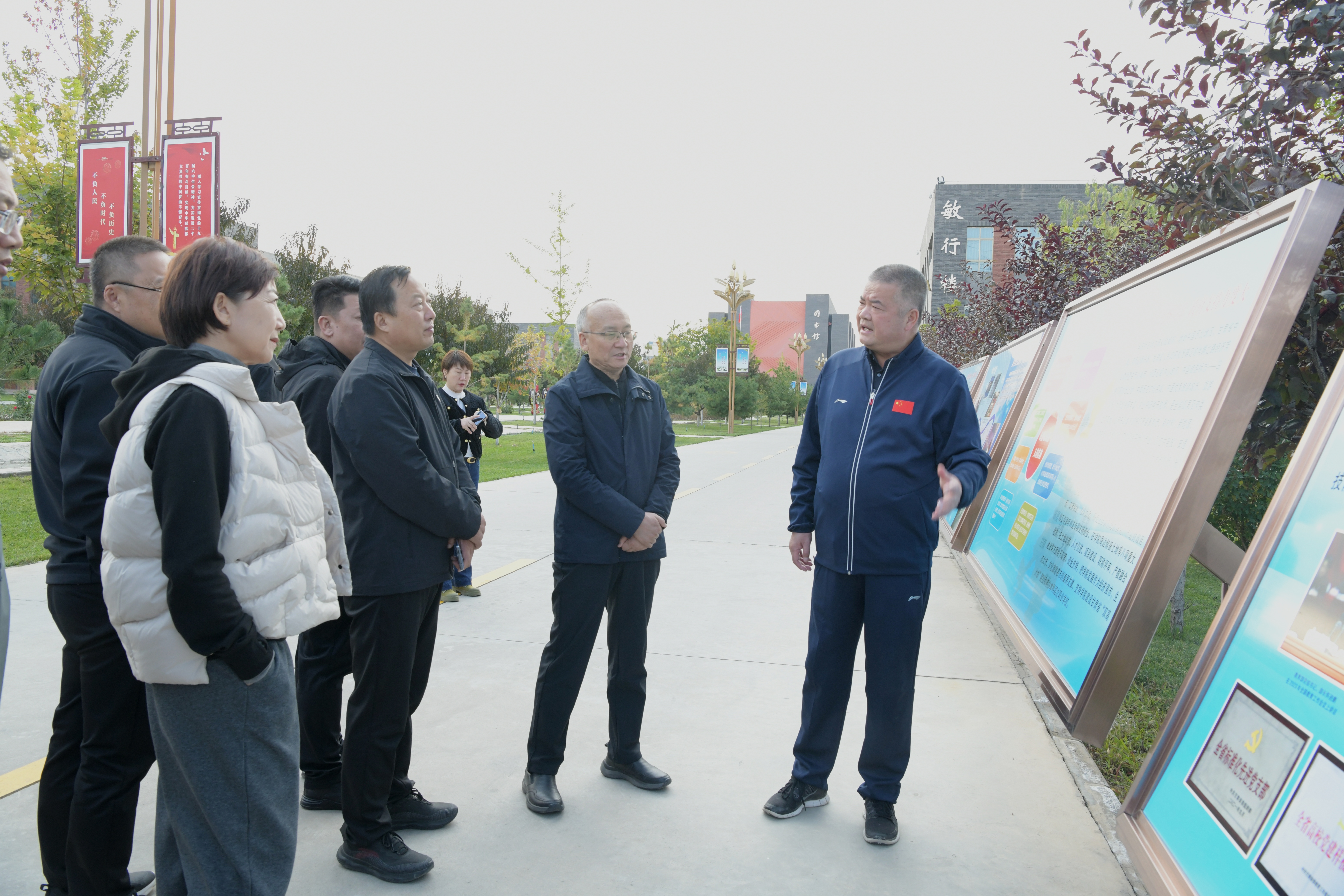 張成杰一行先后參觀了學校紅色文化藝術館、課程思政教學研究示范中心、體育場等地。王守云對張成杰一行的到來表示歡迎,詳細介紹了學校的歷史沿革、辦學特色、發(fā)展目標、雙高建設等方面的情況。