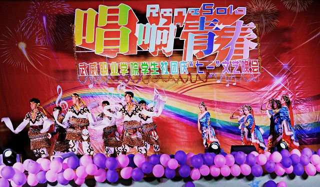 為紀念建黨95周年,6月22日晚,武威職業(yè)學院學生社團在學院禮堂舉辦了慶“七一”文藝晚會。學院副院長潘玉華,學生工作處、招生就業(yè)處、工會、院團委負責人和800多名師生一同觀看了演出。