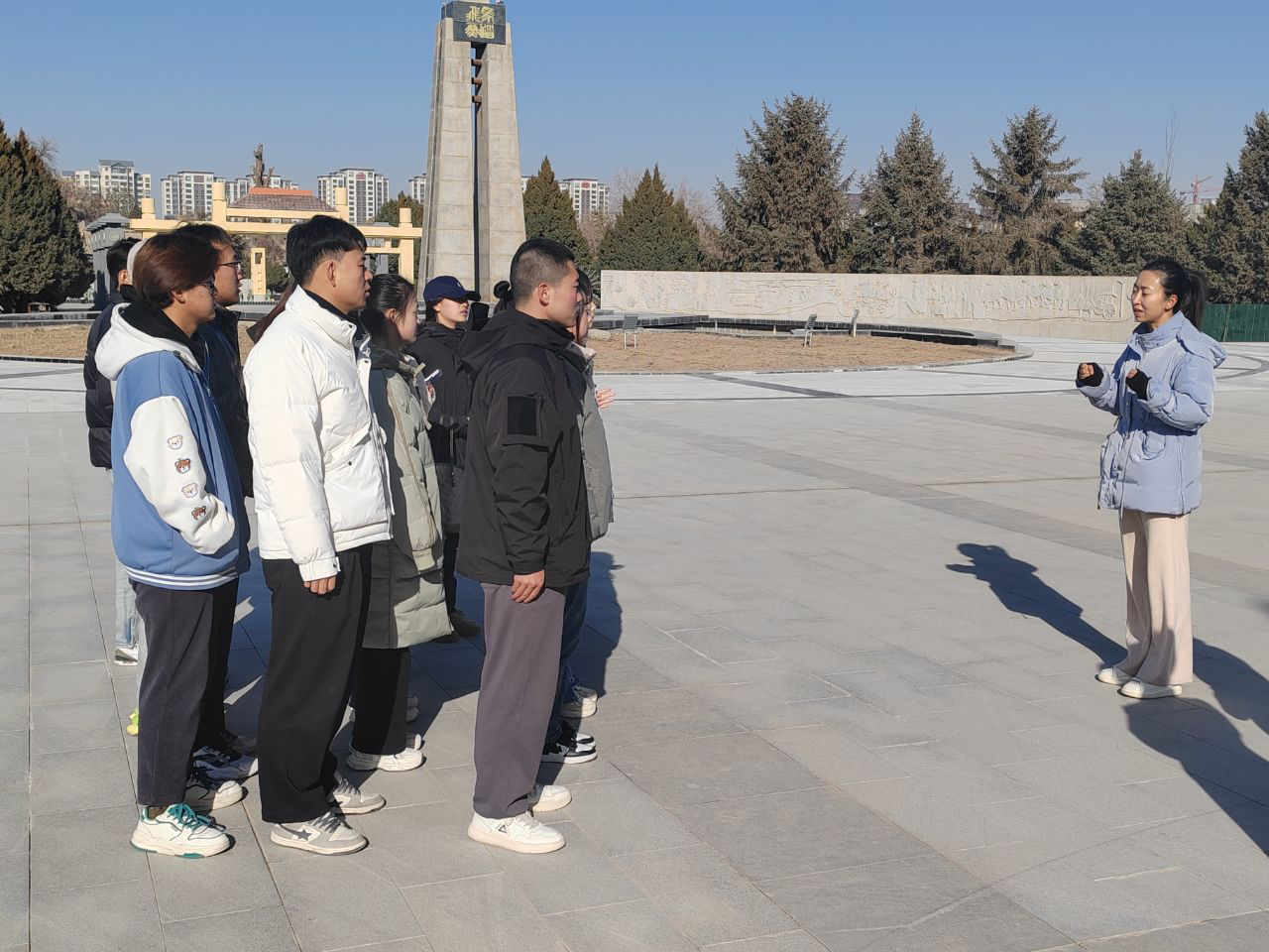 11月24日在4A級景區(qū)雷臺漢墓景區(qū)的馬踏飛燕前,武威職業(yè)學院2022級旅游管理專業(yè)大專班的學生正在進行景區(qū)模擬講解活動。一名學生在企業(yè)兼職教師呂龍梅的指導下,認真地為大家進行講解,這是一次特別的教學活動——將一堂完整的專業(yè)課程搬到景區(qū)進行,通過實踐學習深化專業(yè)知識和技能。