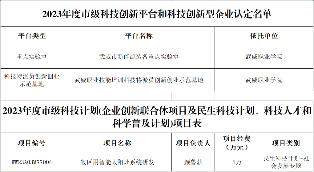 學校喜獲武威市新能源裝備重點實驗室、科技特派員創(chuàng)新創(chuàng)業(yè)示范基地
