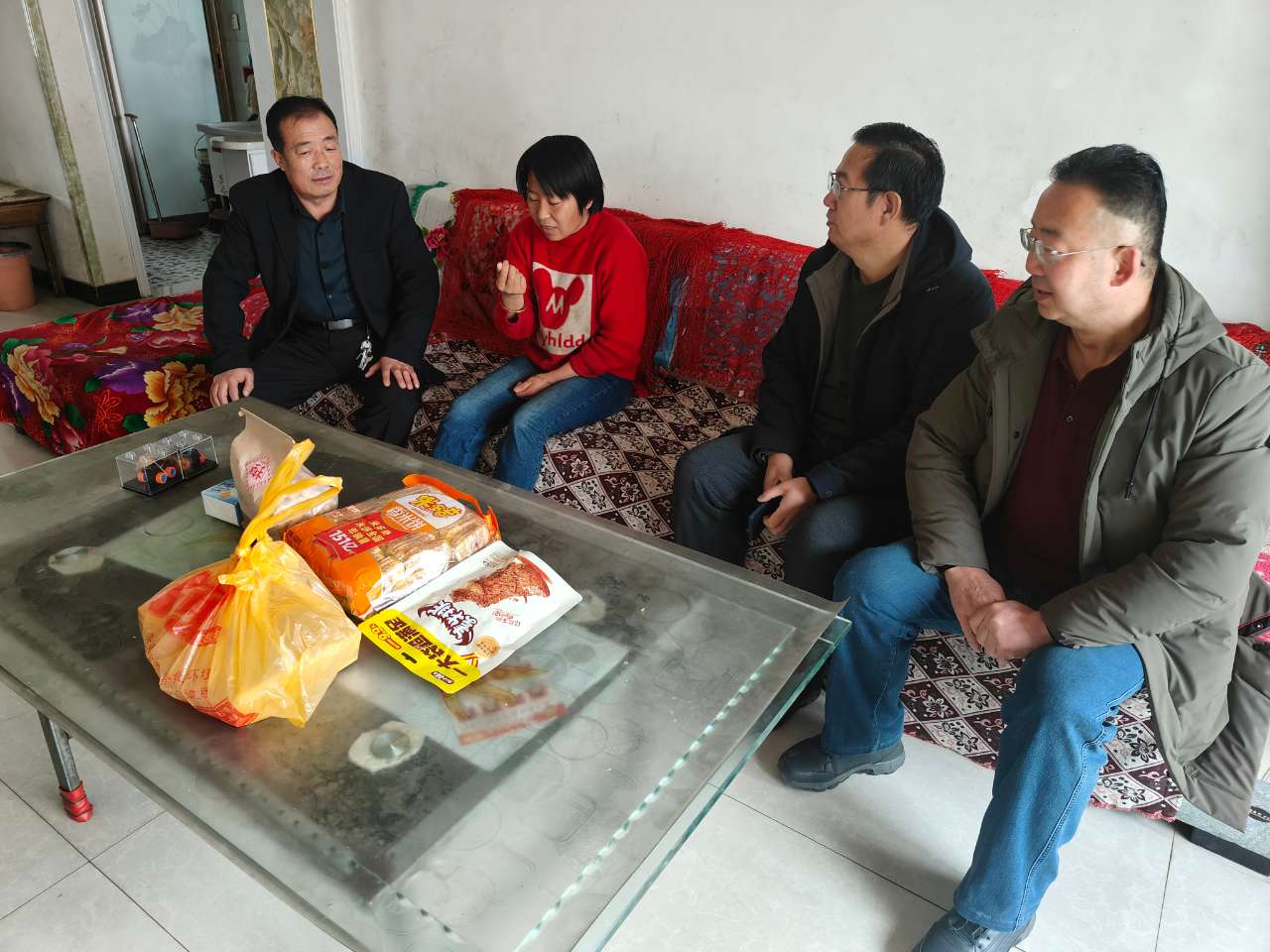 活動之后,張開禮校長一行同駐村工作隊和村兩委實地走訪慰問結對幫扶戶和困難戶,與他們話家常、問冷暖、交心聲,仔細詢問了健康情況、經(jīng)濟收入、政策落實情況以及年貨準備的情況,并為他們送上了慰問品,將組織和個人的溫暖和關愛傳遞到家。作為“娘家人”校領導密切關心駐村工作隊工作情況和生活起居,給工作隊也送去了貼心慰問。