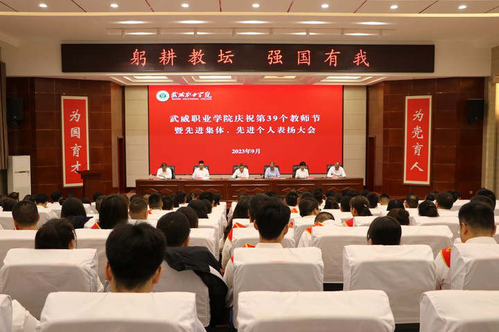 9月8日上午,在第39個(gè)教師節(jié)即將來臨之際,武威職業(yè)學(xué)院慶祝2023年教師節(jié)暨先進(jìn)集體和先進(jìn)個(gè)人表?yè)P(yáng)大會(huì)在菁英廳隆重舉行。學(xué)院黨委書記、校長(zhǎng)趙明主持會(huì)議并講話,在家領(lǐng)導(dǎo)班子成員出席會(huì)議,中層管理干部、受表?yè)P(yáng)的教師和師生代表參加會(huì)議。