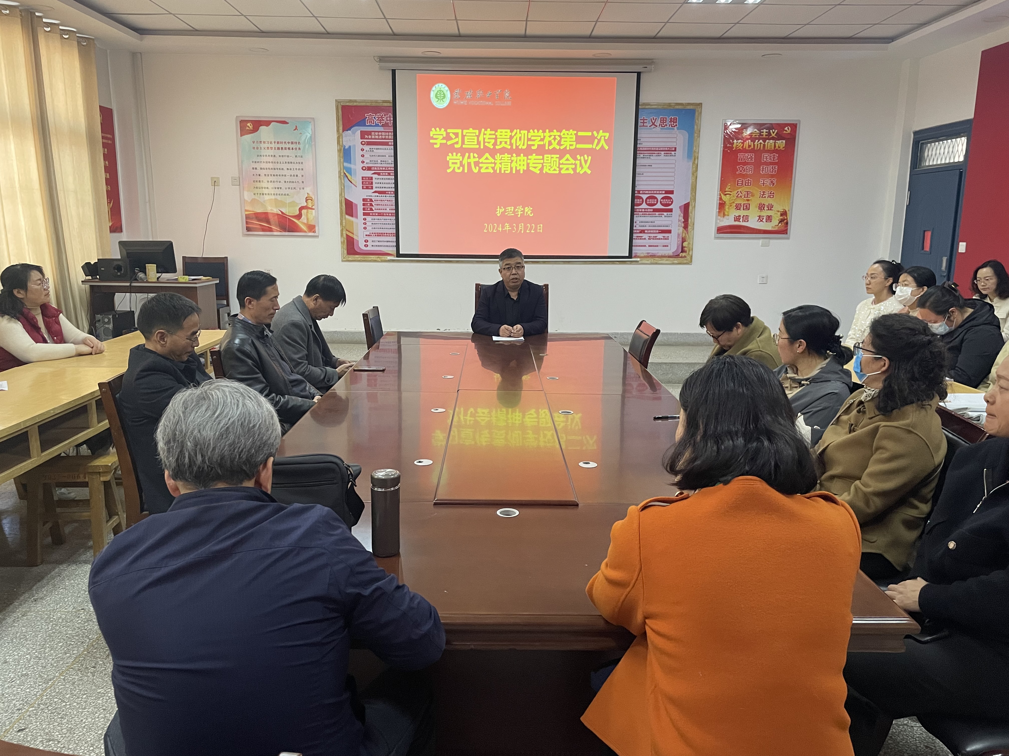 中國(guó)共產(chǎn)黨武威職業(yè)學(xué)院第二次代表大會(huì)的勝利召開,在護(hù)理學(xué)院廣大教職工中引起了熱烈反響。根據(jù)學(xué)校黨委要求,3月22日,護(hù)理學(xué)院召開全體教職工會(huì)議,專題學(xué)習(xí)宣傳貫徹學(xué)校第二次黨代會(huì)精神,會(huì)議由黨總支書記張建輝主持。