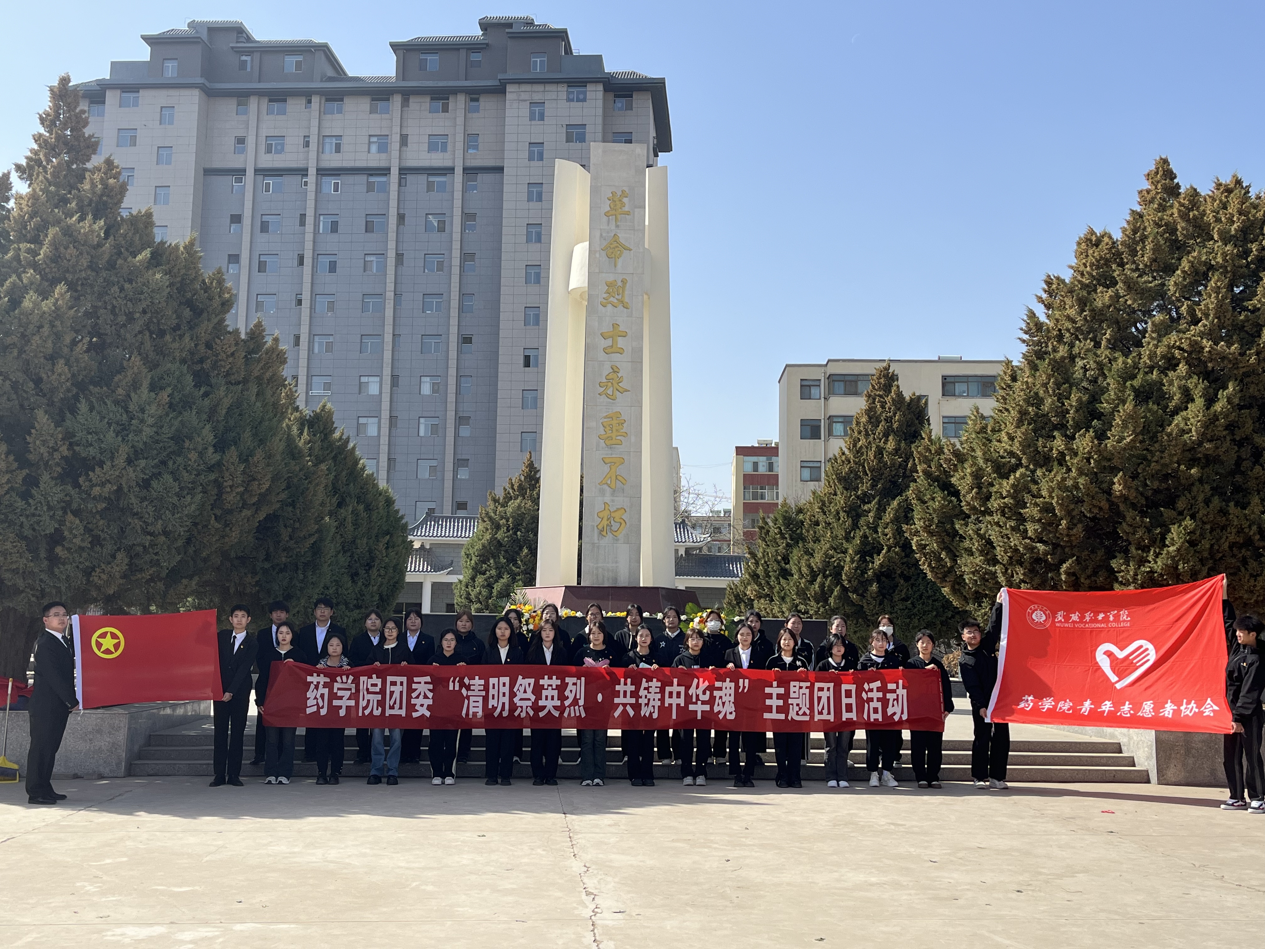 ? ? ?功昭日月千秋頌,義薄云天萬古存。為緬懷革命先烈的豐功偉績(jī),弘揚(yáng)愛國(guó)主義精神,2024年4月3日下午,武威職業(yè)學(xué)院藥學(xué)院黨支部攜藥學(xué)院團(tuán)委前往涼州區(qū)植物園英雄紀(jì)念碑,開展以“清明祭英烈·共鑄中華魂”為主題的團(tuán)日活動(dòng)。