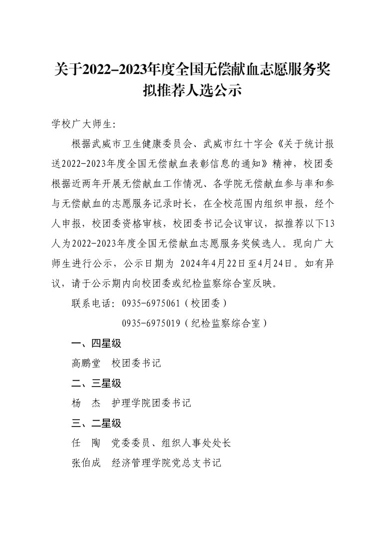 關(guān)于2022-2023年度全國無償獻(xiàn)血志愿服務(wù)獎擬推薦人選公示