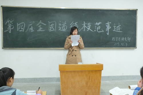 藥學(xué)系團總支于2013年12月9日組織全體同學(xué)深入學(xué)習(xí)了“第四屆全國道德模范事跡”,一個個動人的事跡印入耳畔,他們或充滿愛心、助人為樂,或見義勇為、舍身忘死,或敬老愛親、血脈情深。