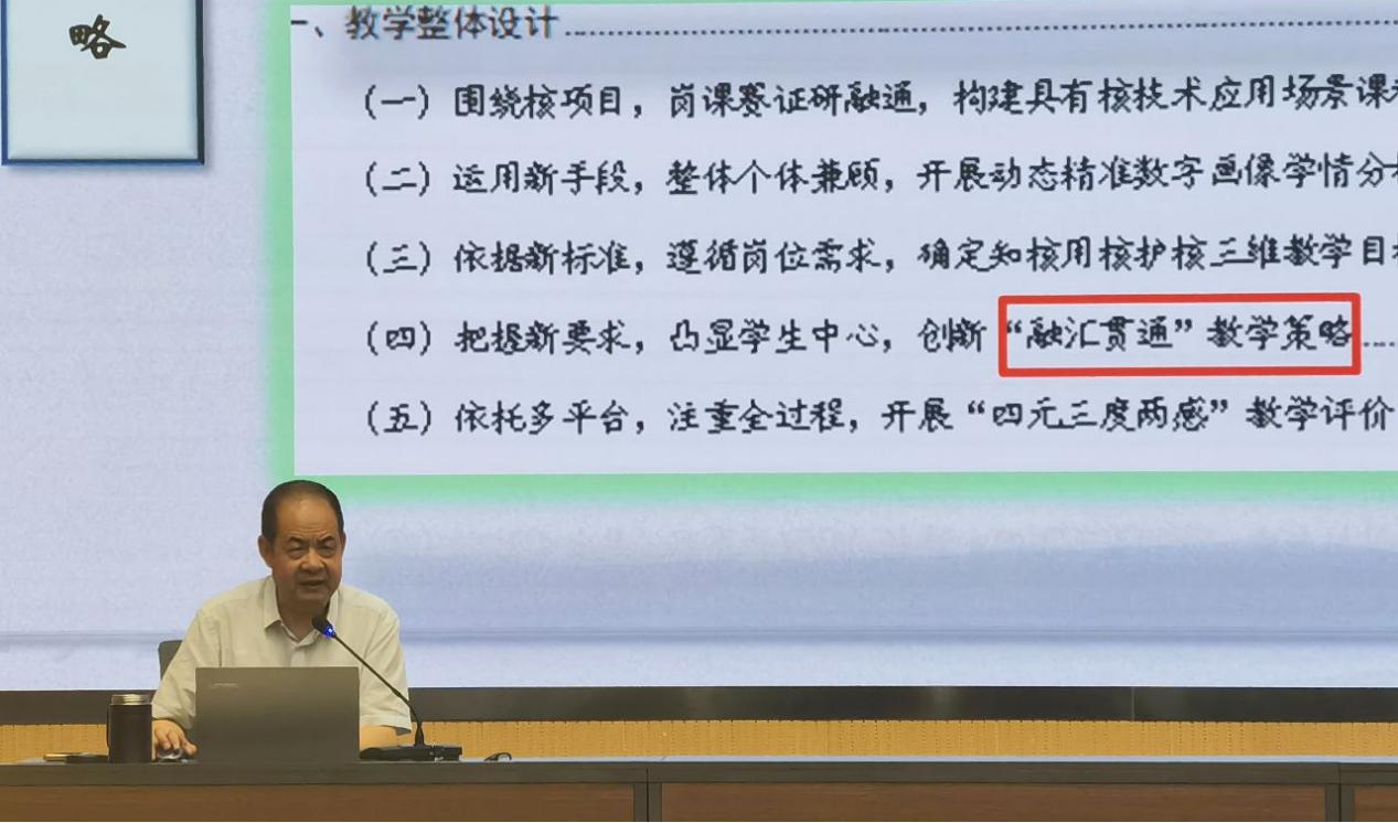 翟存祥以“獲獎作品是如何打磨的——以2023年核技術(shù)應(yīng)用作品為例”為題,對標(biāo)國家教學(xué)能力大賽標(biāo)準(zhǔn),總結(jié)參賽經(jīng)驗(yàn),對比賽中教學(xué)團(tuán)隊(duì)的組建、參賽項(xiàng)目的選題、人才培養(yǎng)方案的完善、課程標(biāo)準(zhǔn)的制訂、教學(xué)實(shí)施方案和教案撰寫、課堂實(shí)錄視頻的拍攝以及賽場答辯的準(zhǔn)備做了深入細(xì)致的分析。