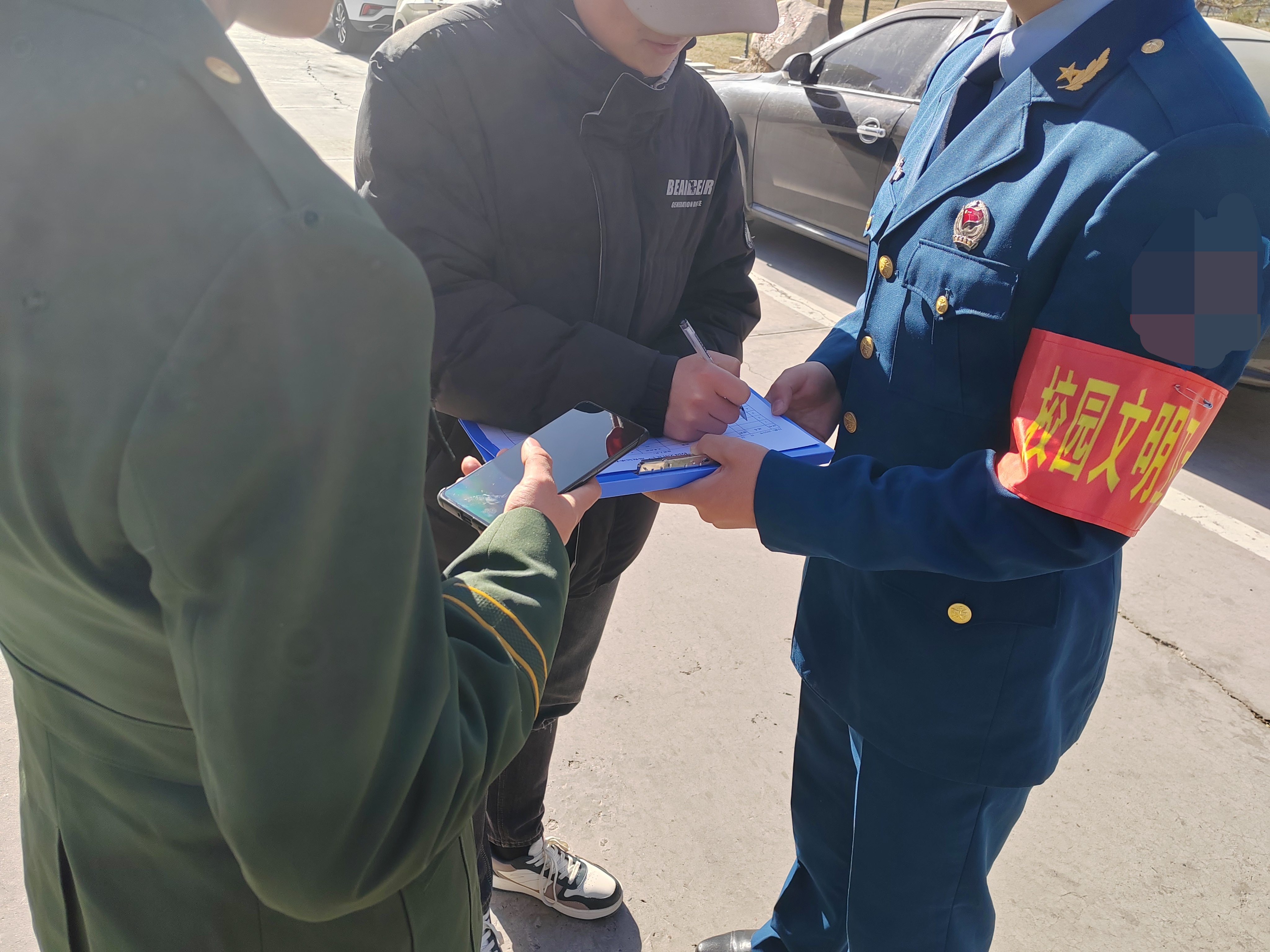文明校園護(hù)衛(wèi)隊(duì)組建以來(lái),他們克服困難,準(zhǔn)時(shí)準(zhǔn)點(diǎn)在校園里巡邏執(zhí)勤,退役大學(xué)生用挺拔帥氣的軍姿、嚴(yán)以律己的作風(fēng)、有理有據(jù)的話語(yǔ)有效勸阻了學(xué)生的不文明行為,為校園文明建設(shè)做出了貢獻(xiàn)。