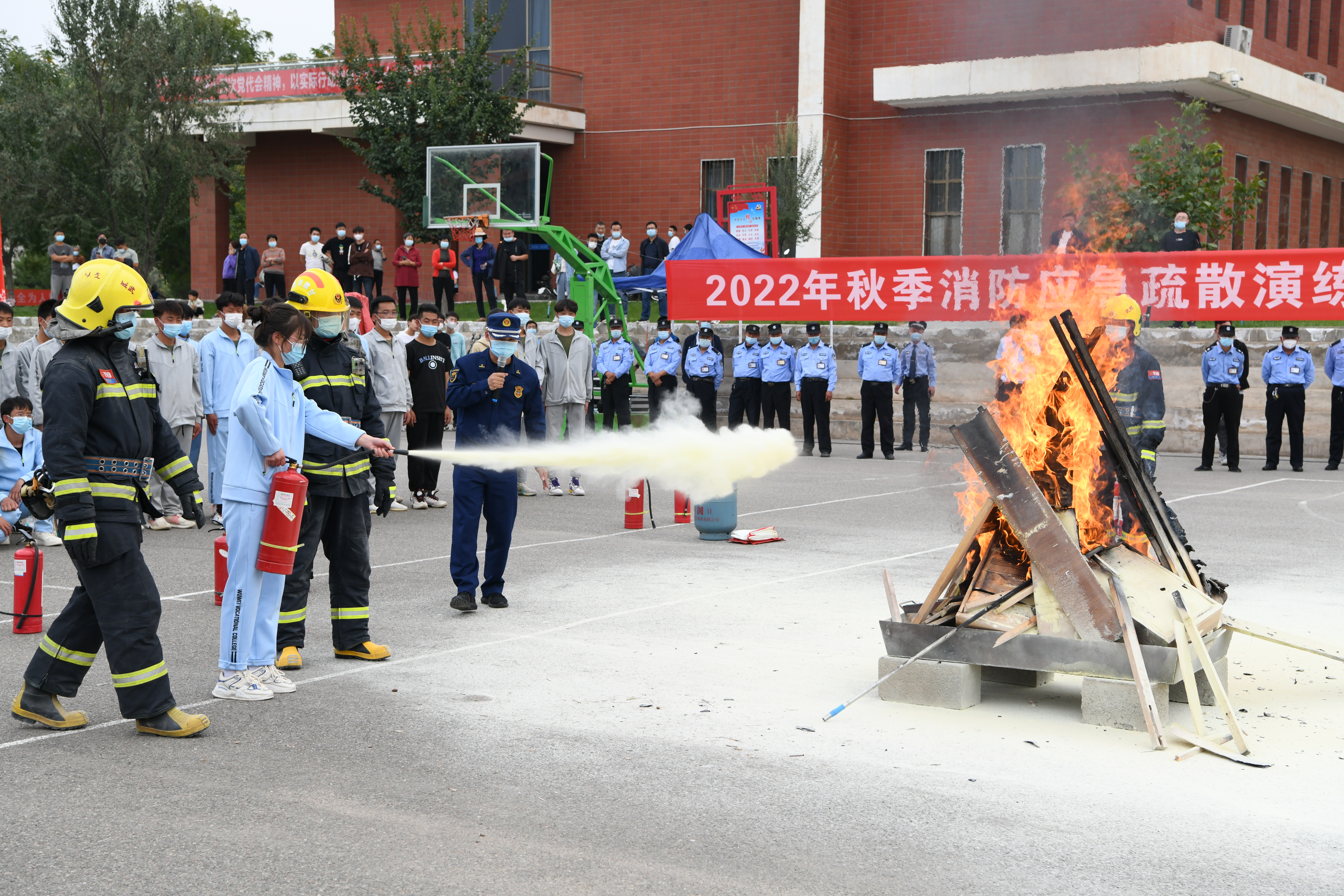 9月30日,學(xué)校聯(lián)合武威市消防救援支隊(duì)舉行了2022年秋季消防應(yīng)急疏散暨滅火演練活動(dòng)。學(xué)校副校長王守云、武威市消防救援支隊(duì)涼都特勤站副站長張旭出席活動(dòng),安全保衛(wèi)處、學(xué)生工作處、各二級(jí)學(xué)院負(fù)責(zé)人和輔導(dǎo)員、班主任現(xiàn)場觀摩演練,約4200多名2022級(jí)新生參加了演練。