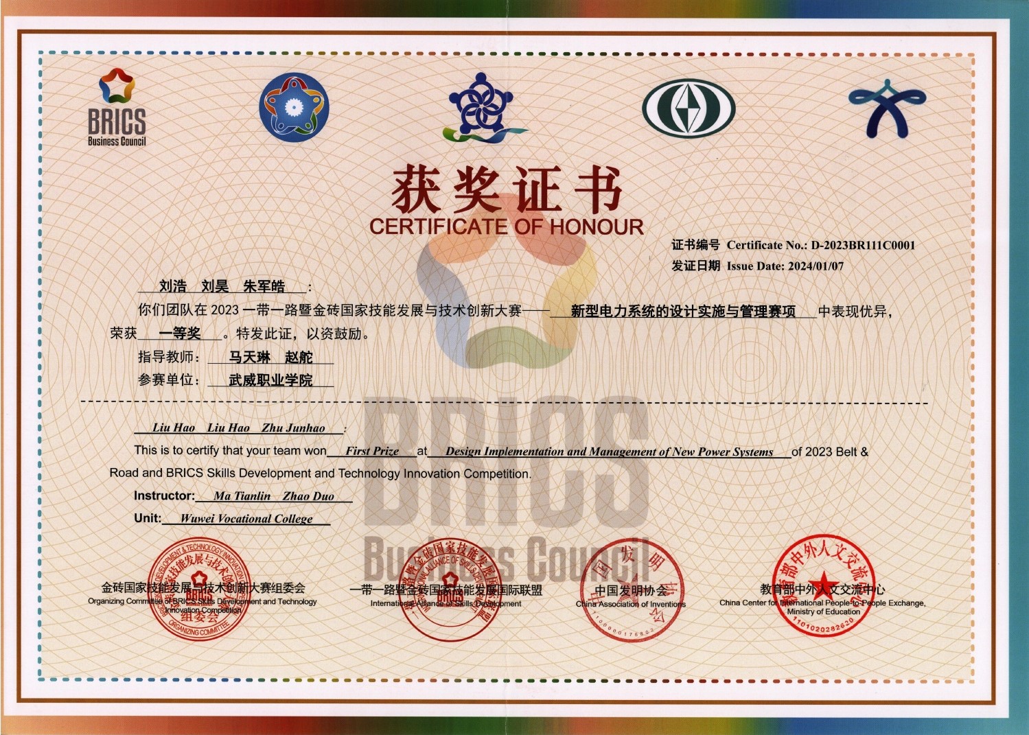 2023年一帶一路暨金磚國家技能發(fā)展與技術(shù)創(chuàng)新大賽新型電力系統(tǒng)的設(shè)計(jì)實(shí)施賽項(xiàng)一等獎