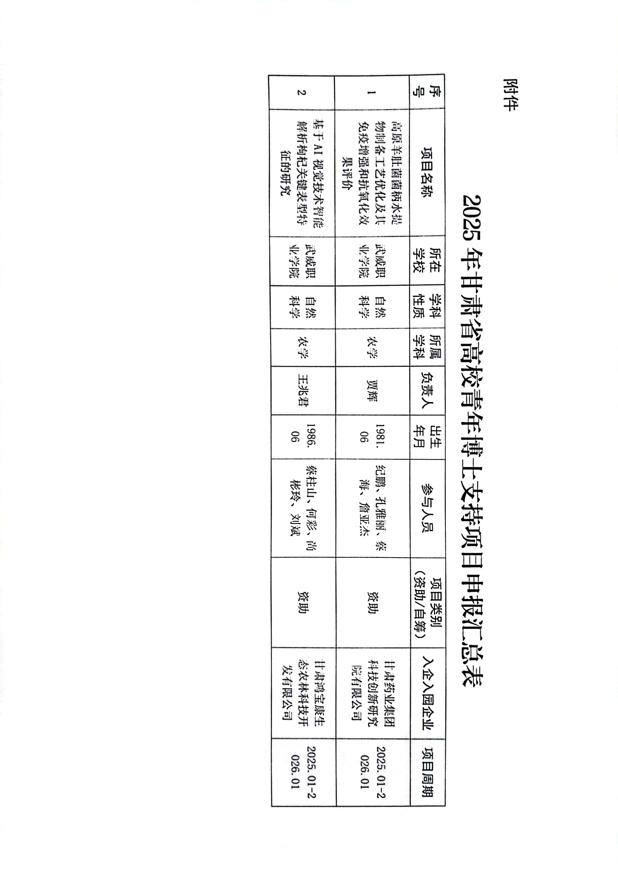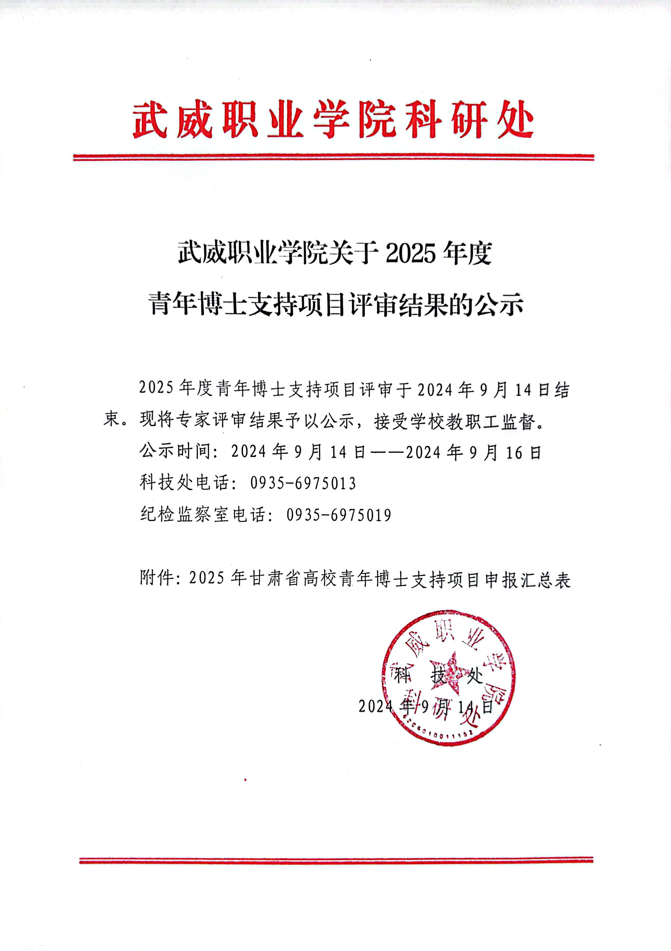 武威職業(yè)學院關于2025年度青年博士支持項目評審結果的公示