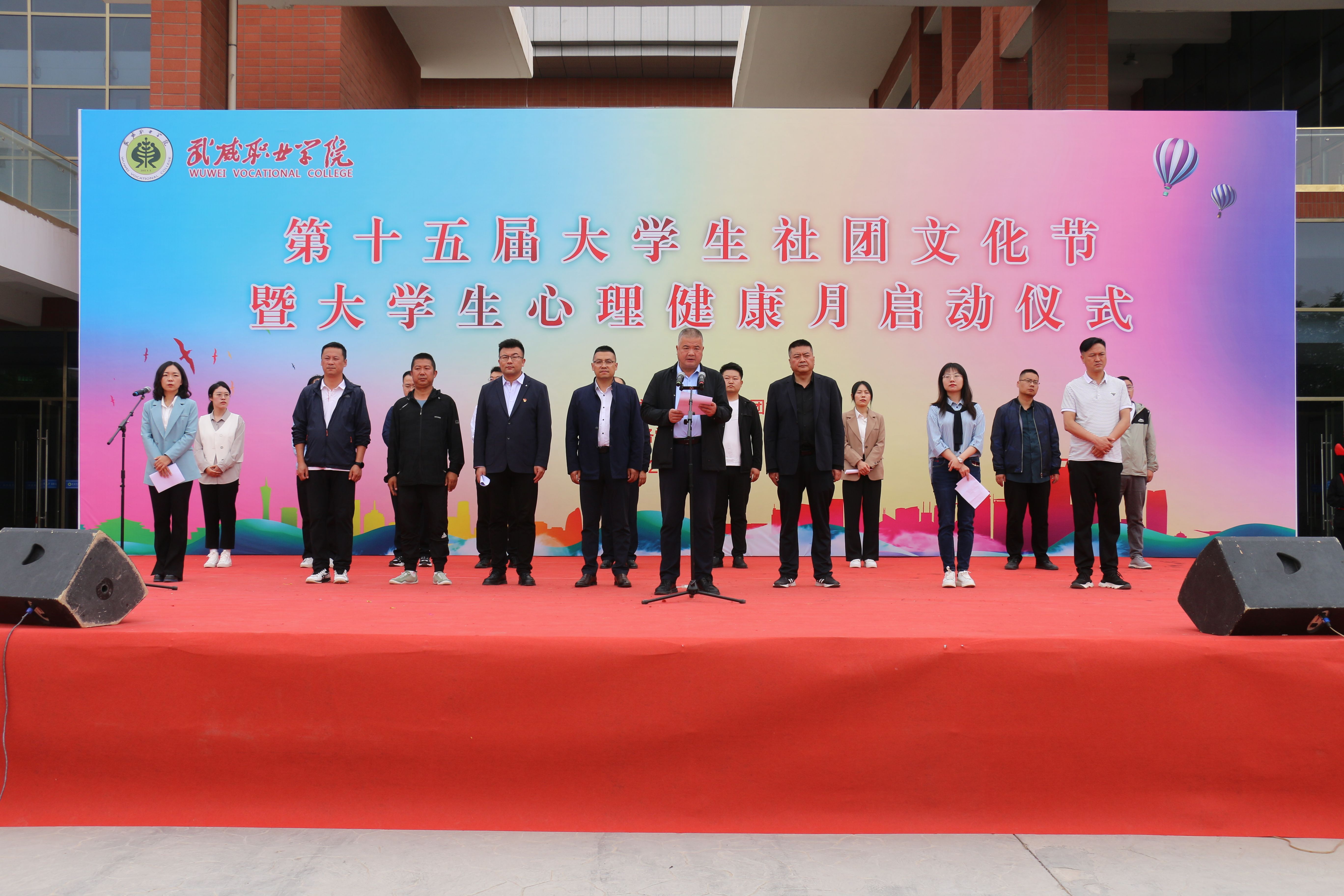 為深入貫徹落實黨的二十大精神,深入推進“三抓三促”行動,全力推動學校“雙高計劃”建設和武威職業(yè)技術(shù)大學的申辦,促進學生社團健康有序發(fā)展,5月22日,學校團委在大學生活動中心廣場舉行了第十五屆大學生社團文化節(jié)開幕式。黨委委員、副校長王守云出席活動并講話,招生就業(yè)處、安全保衛(wèi)處負責人,各二級學院團委書記、輔導員,各學生社團指導教師及2000多名社團成員參加活動。開幕式由校團委副書記謝麗霞主持。