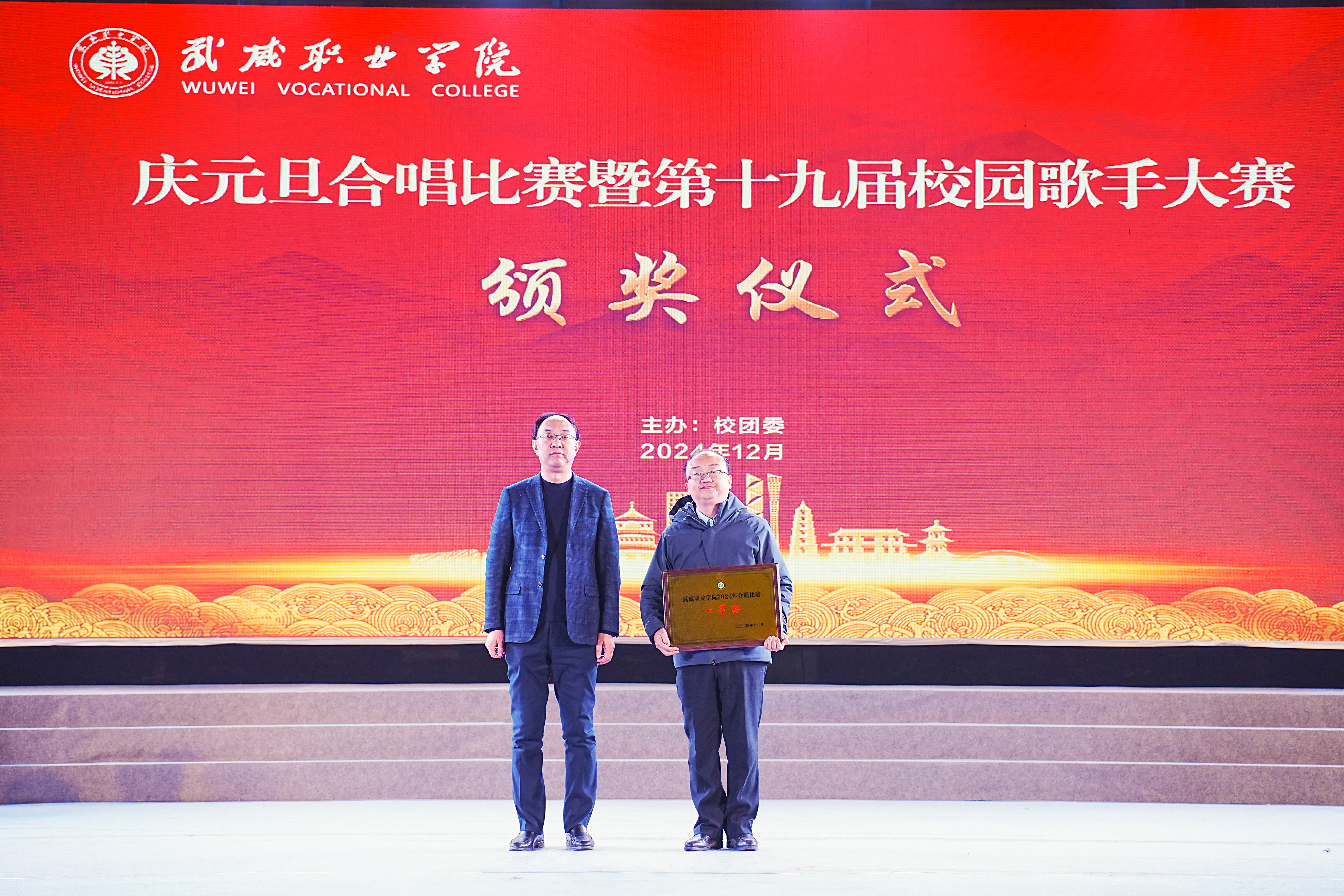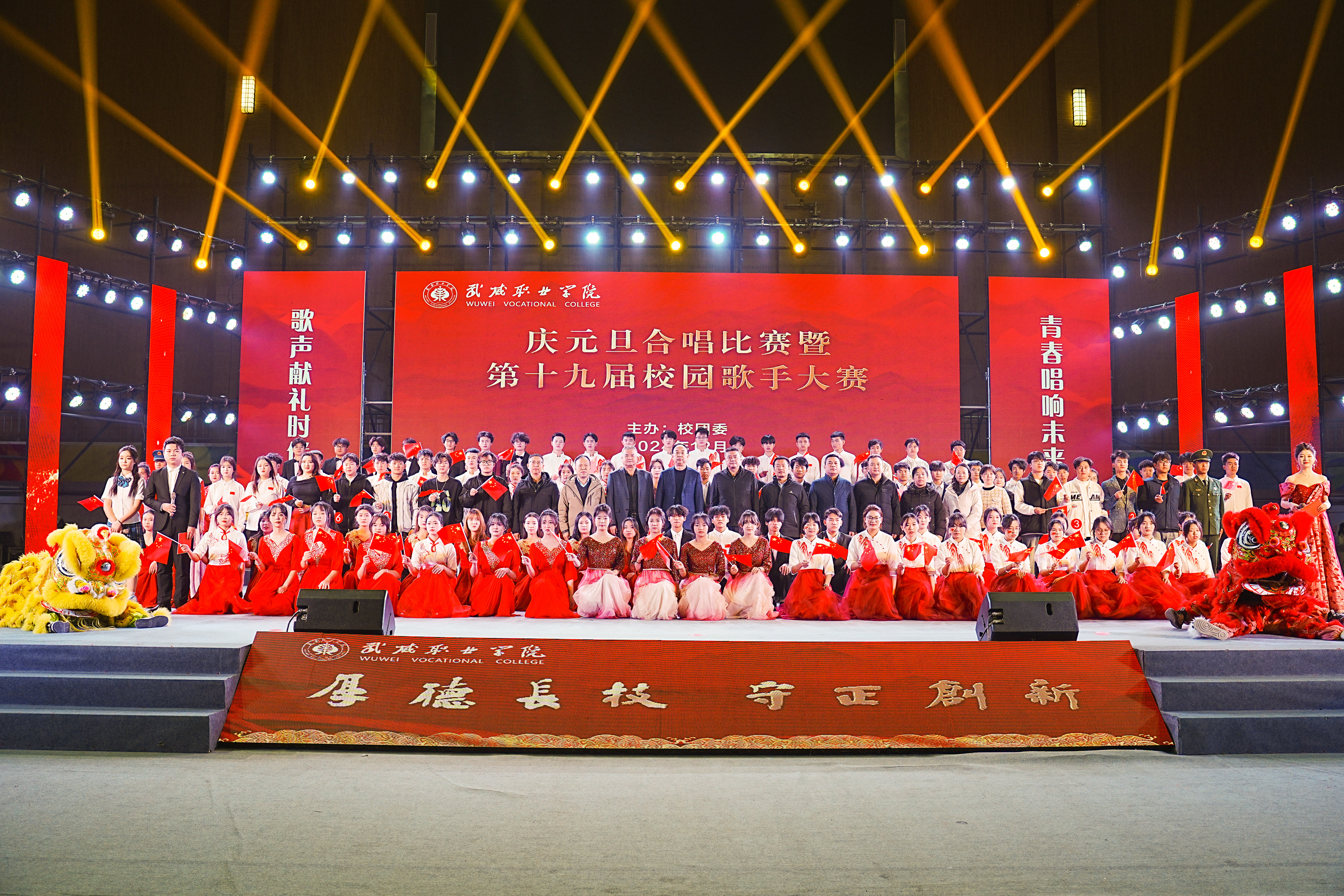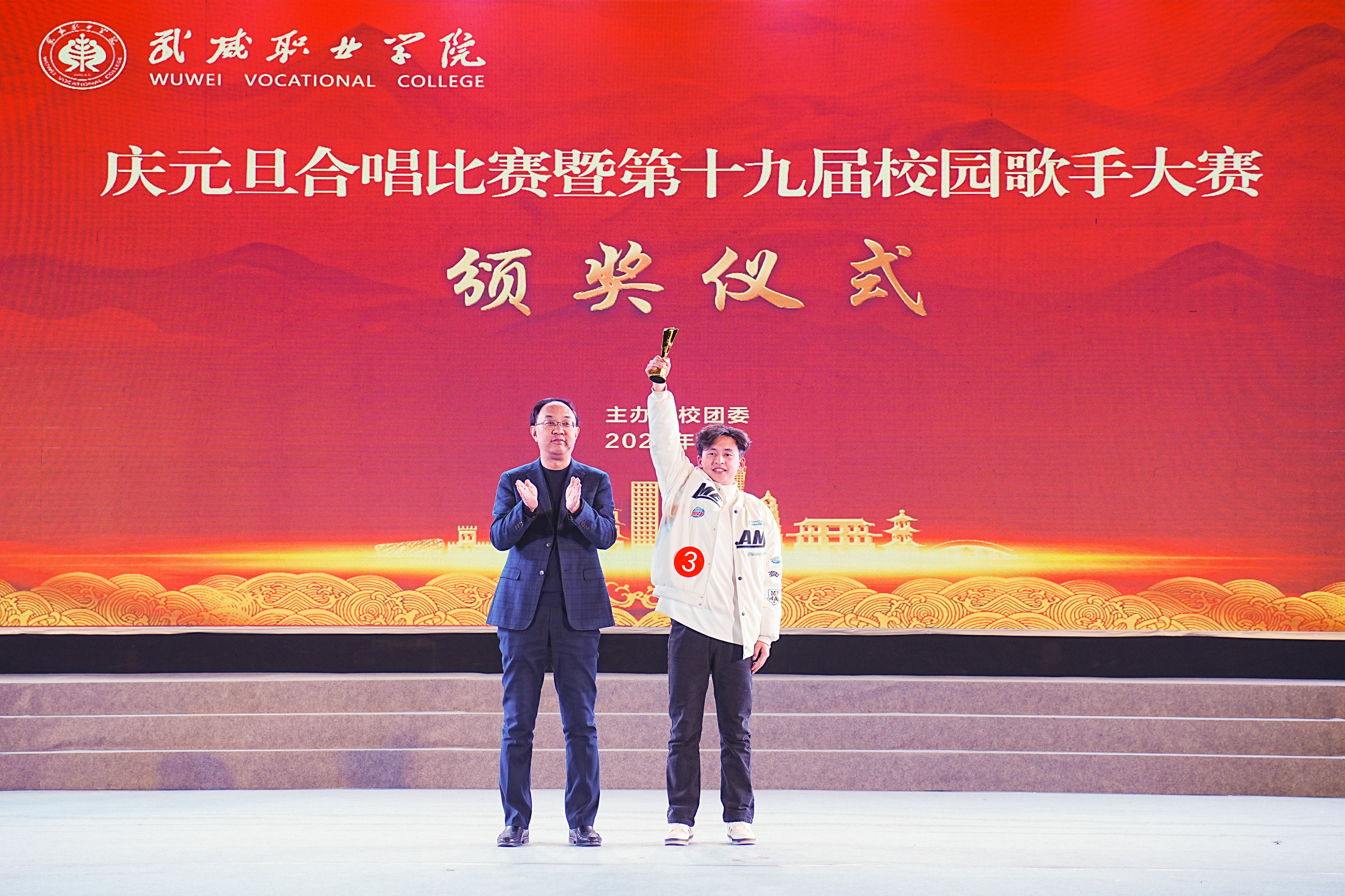 歌聲獻禮時代,青春唱響未來。12月26日晚,學校“慶元旦”合唱比賽暨第十九屆校園歌手大賽在體育館成功舉辦。學校黨委書記王宏出席活動并為獲獎集體和個人頒獎,黨委委員、副校長王守云出席活動,各二級學院和相關部門負責人與2000余名師生現(xiàn)場觀看了比賽。